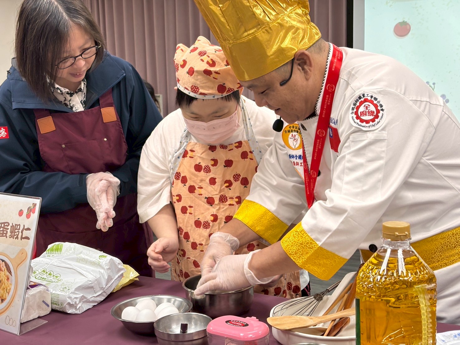 高雄市社會局無障礙之家7日舉辦一場充滿溫馨與笑聲的廚藝活動──「大主廚小跟班的幸福食光」,邀請榮獲有「廚師界金馬獎」美譽的「金帽獎」主廚黃勝賓,攜手5位對料理充滿熱情的憨兒學員,一同下廚體驗料理的樂趣。社會局長蔡宛芬也親自參與,與大家一同剝菜、打蛋、擺盤,現場溫馨感人,香氣與感動齊飛。