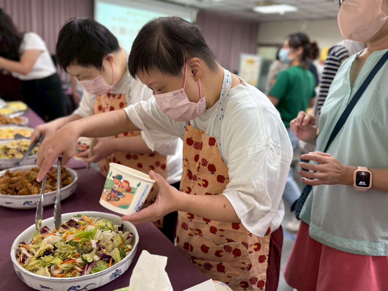 其中49歲、心智障礙極重度的小蕙,因平日對料理展現高度興趣,經常在教保員陪伴下練習簡單家電烹調,此次終於站上廚房前線,親手完成夢寐以求的「為大家煮一頓菜」,她不僅熟練地處理生菜與蛋液,還貼心提醒同伴料理技巧,看著自己做的菜被一掃而空,小蕙笑得格外燦爛,自信也悄然萌芽。