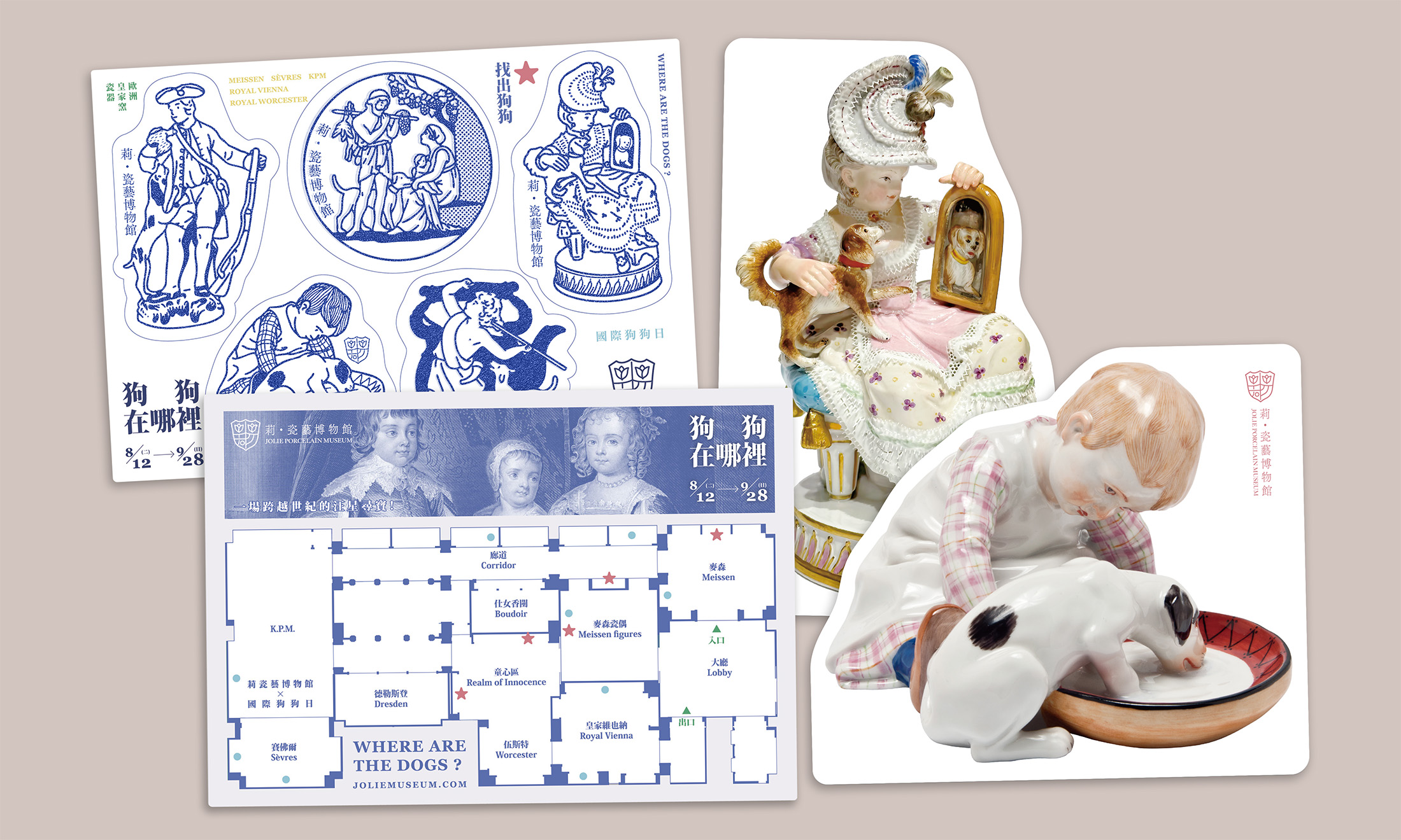 此次互動所涉及的展品多為19世紀歐洲皇家窯瓷器,細緻的工藝與構圖中,往往蘊藏著狗與主人間的日常互動、神話象徵,甚至獵犬文化的故事背景。觀眾在尋寶過程中,將以更專注的視角觀察瓷器細節,並在遊戲中理解西洋藝術中動物形象的文化意涵。