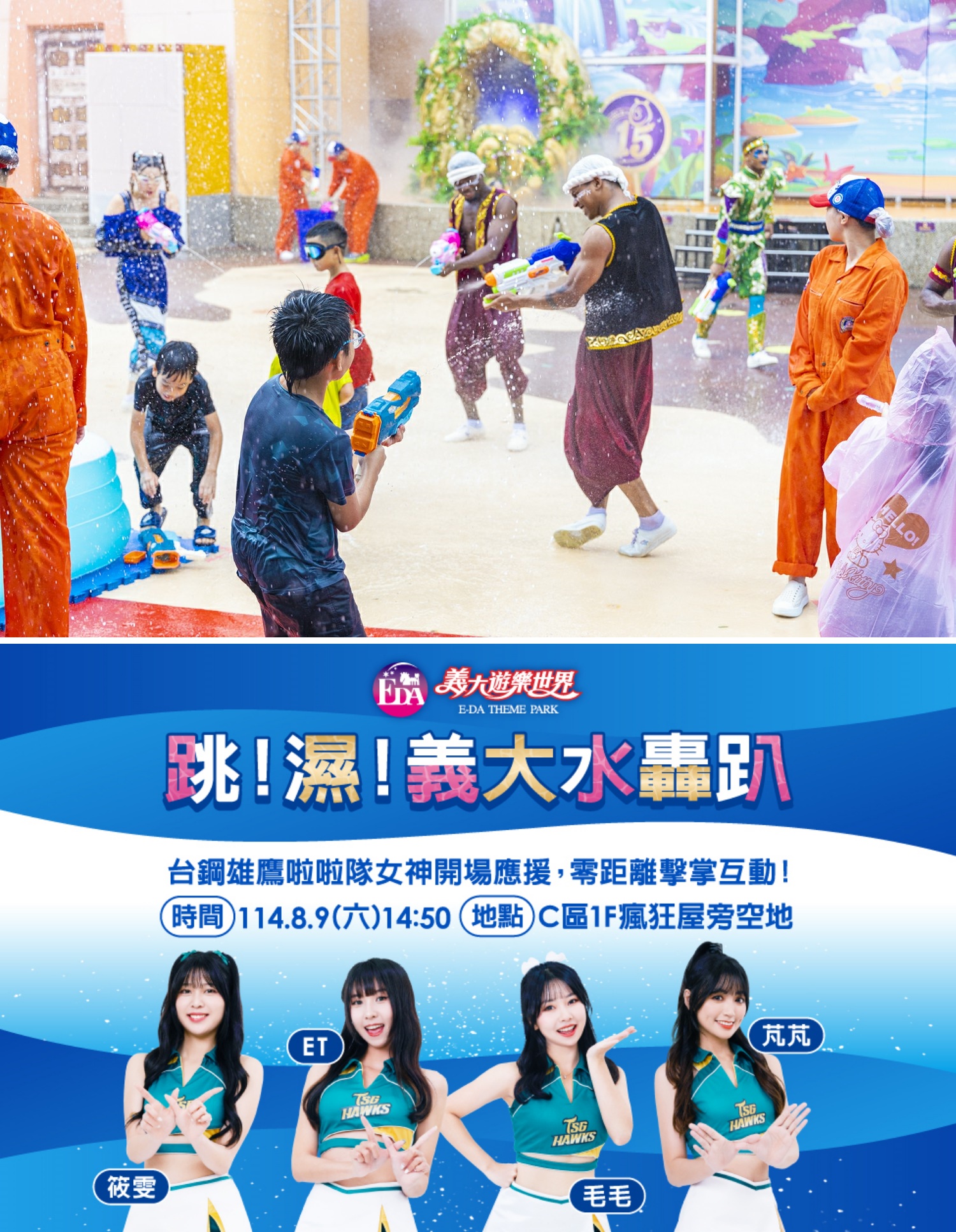 ↑圖說:全台唯一的「水戰遊行」!現場加碼8/9(六)台鋼雄鷹啦啦隊人氣登場。(圖片來源:義大世界提供)
