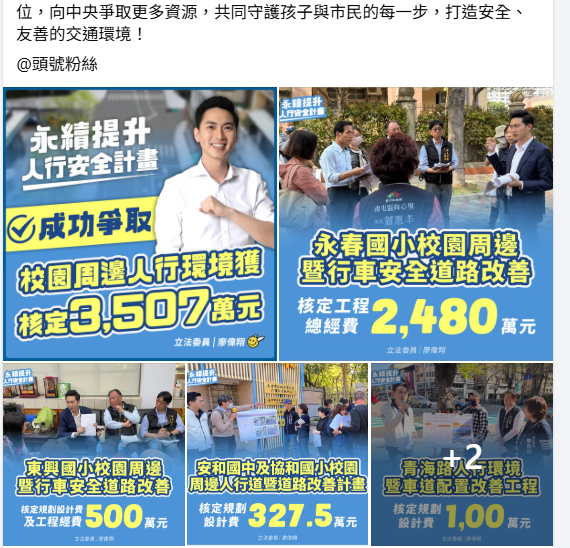 圖說:廖偉翔上任來為市民爭取經費不遺餘力,兌現選前重要承諾,獲網友們支持。圖/廖偉翔臉書