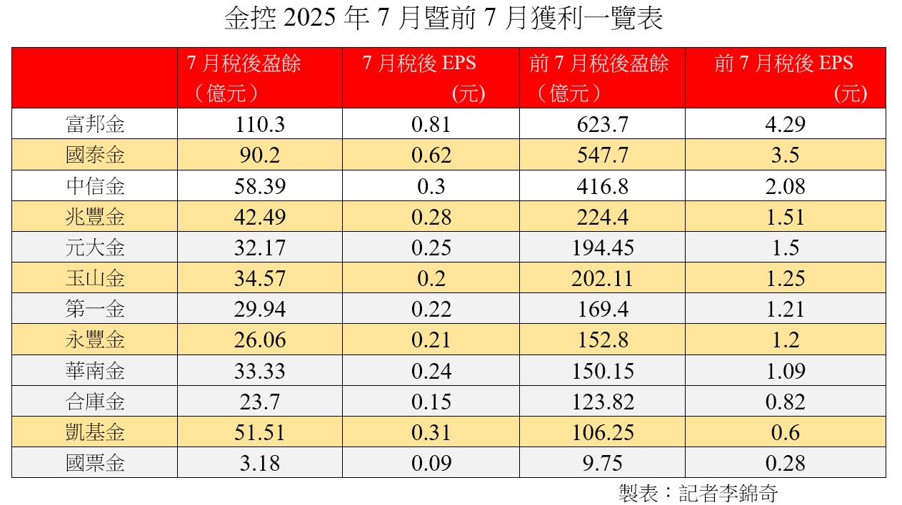 此外,玉山金、永豐金,前7月獲利都創歷史同期新高,表現突出。