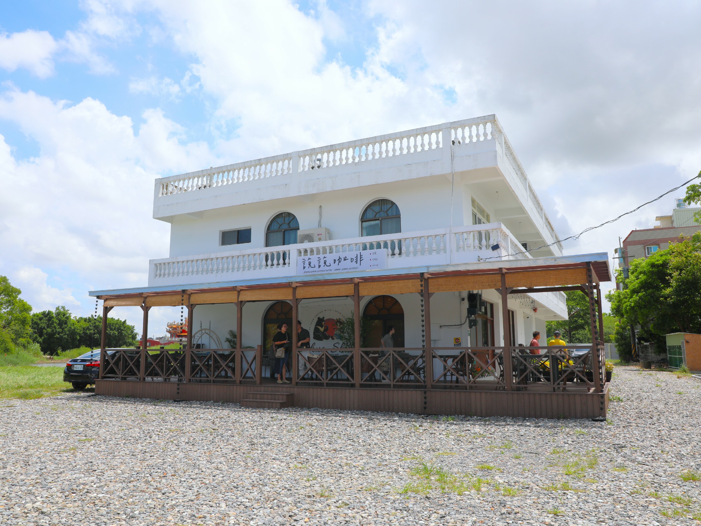 ↑圖說:白色外牆的說說咖啡,位在嘉義縣六腳鄉間,裡面有著異國夫妻的創業與愛情故事。(圖片來源:嘉義縣勞青處提供)