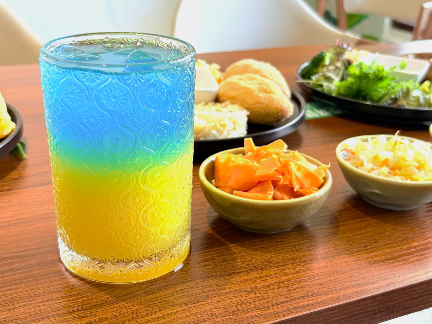 ↑圖說:靈感來自烏克蘭國旗的招牌飲品「榮耀歸烏克蘭」。(圖片來源:嘉義縣勞青處提供)