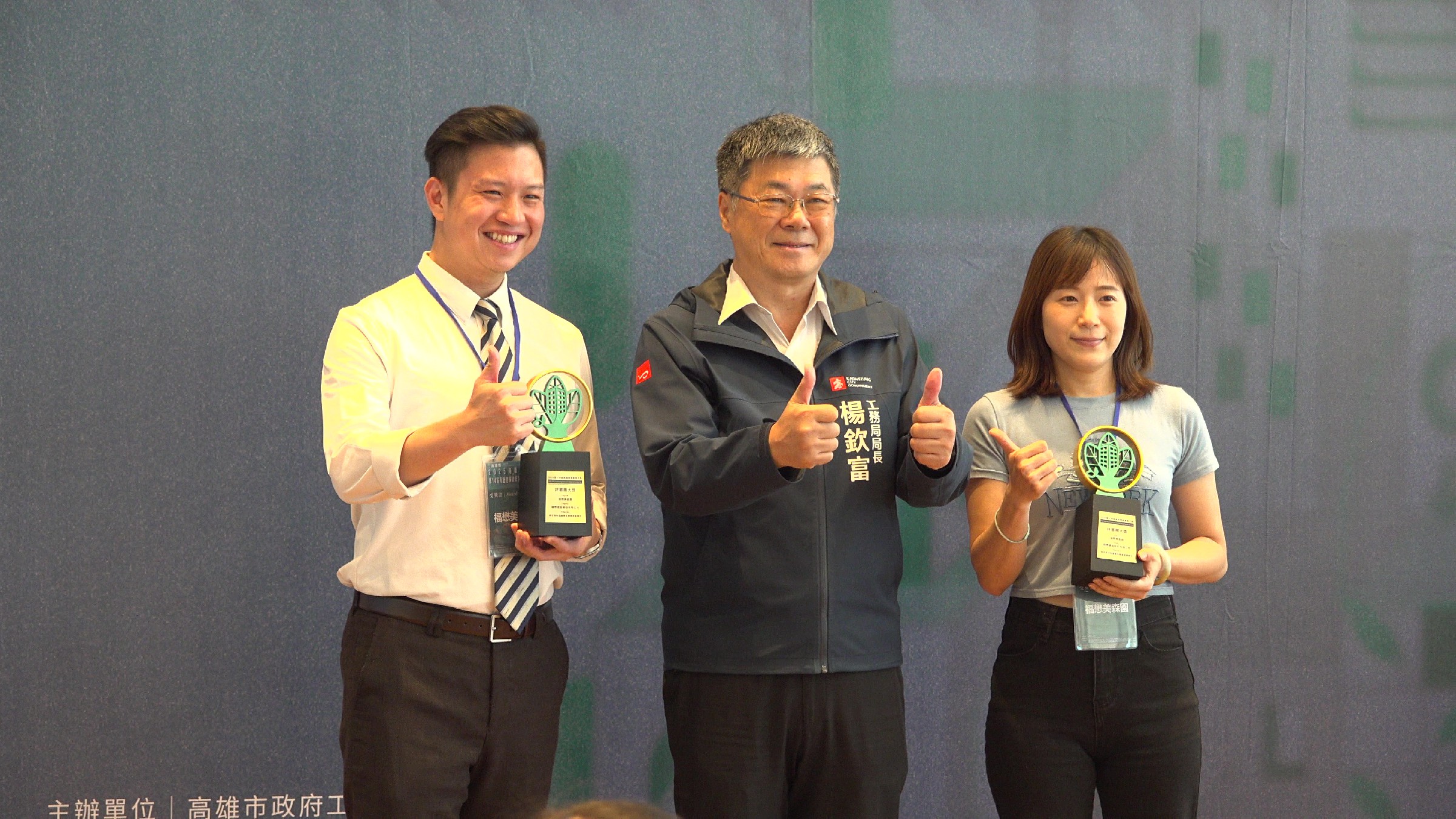 ↑圖說:「福懋美森園」榮獲評審團大獎,由工務局長楊欽富頒發獎盃予得獎單位與設計師。(圖片來源:記者 賴君欣 拍攝)