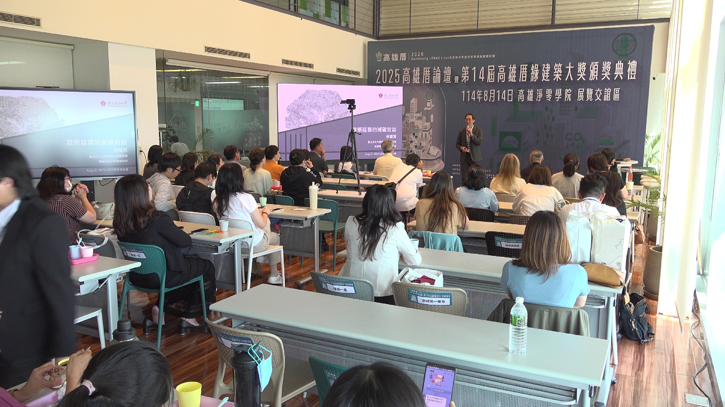 ↑圖說:「2025高雄厝論壇暨第14屆高雄厝綠建築大獎頒獎典禮」於高雄淨零學院登場(圖片來源:記者 賴君欣 拍攝)