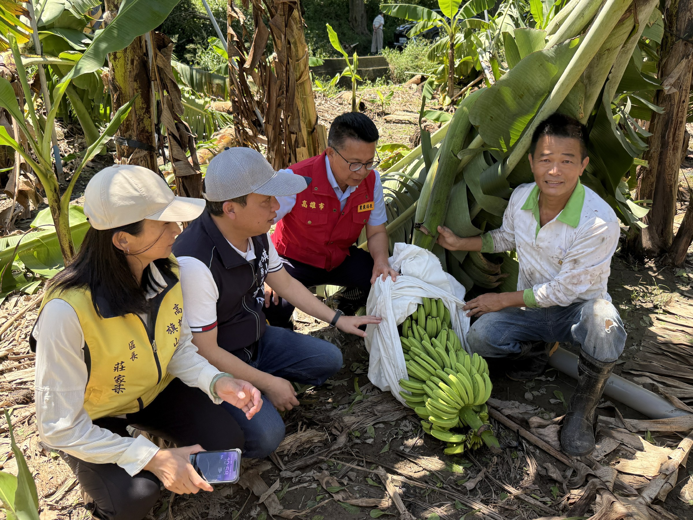 ↑圖說:農業局局長姚志旺關心旗山區香蕉園受災情況(圖片來源:高雄市農業局提供)