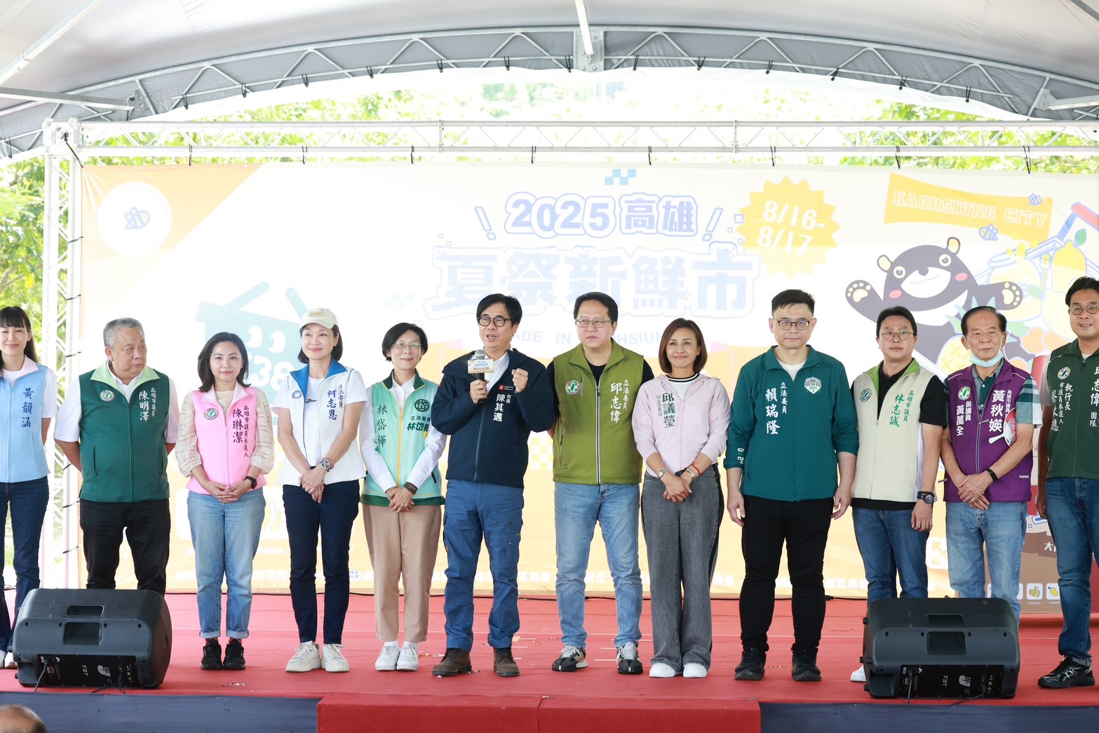 2025高雄夏祭新鮮市主打精選在地優質農特產,其中大崗山野生龍眼林蜂蜜質地純正、香味濃郁、口感滑潤,堪稱「蜜中極品」。市長陳其邁16日出席第25屆「大崗山龍眼蜂蜜文化節」開幕,親自到場推薦,以行動表達支持。他致詞時談到養蜂的辛勞,強調「農會挺農民,市府挺農會」,並指出自己年年出席,從未間斷。今年龍眼蜂蜜迎來豐收,預估產量達2,000噸,他也頒發有「蜂蜜界奧斯卡」之稱的國產龍眼蜂蜜評鑑特等及頭等獎,肯定農友辛勤成果。