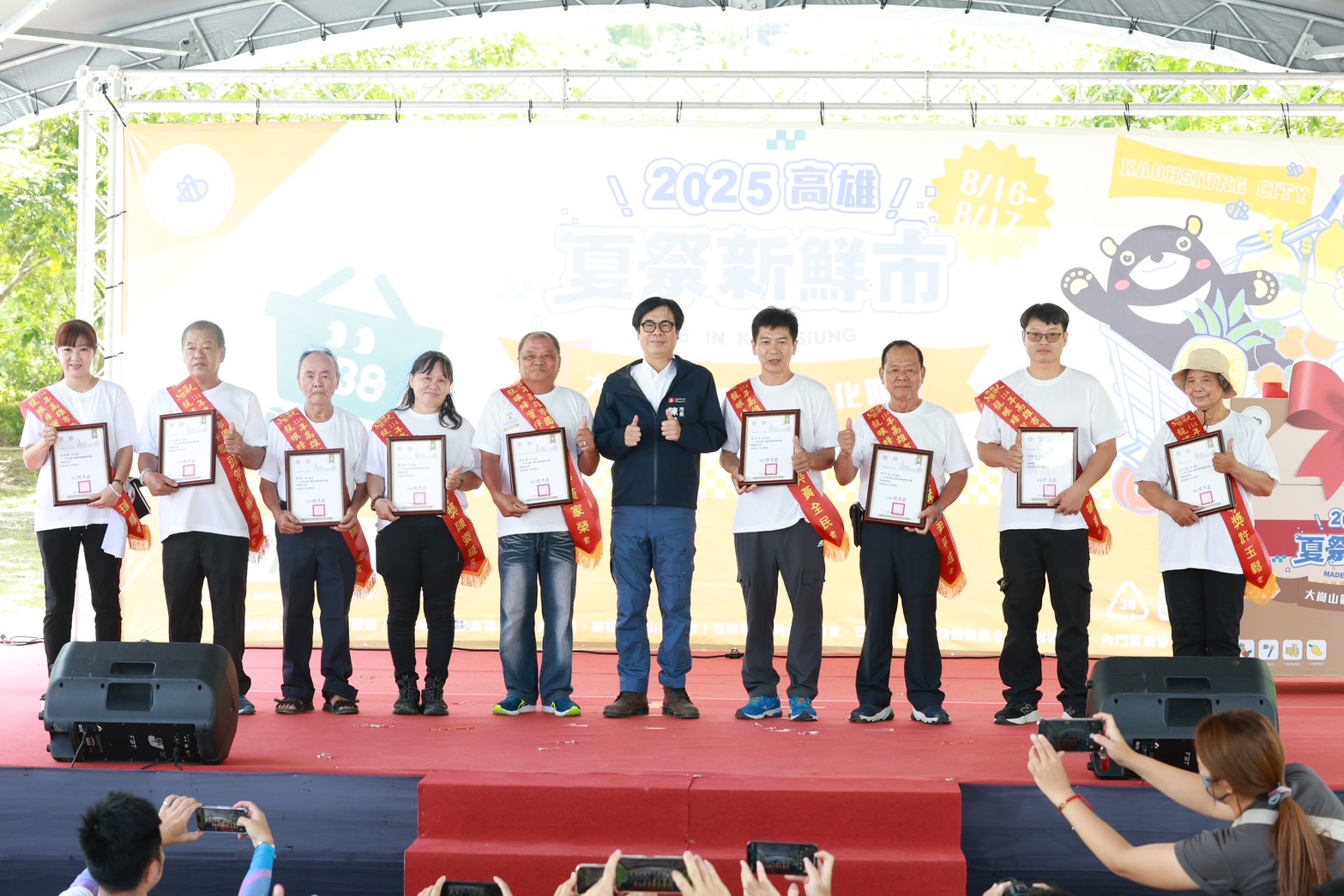 圖說:「大崗山龍眼蜂蜜文化節」邁入第25年,陳其邁出席活動並頒發國產龍眼蜂蜜評鑑特等及頭等獎。(圖片來源:高雄市政府提供)