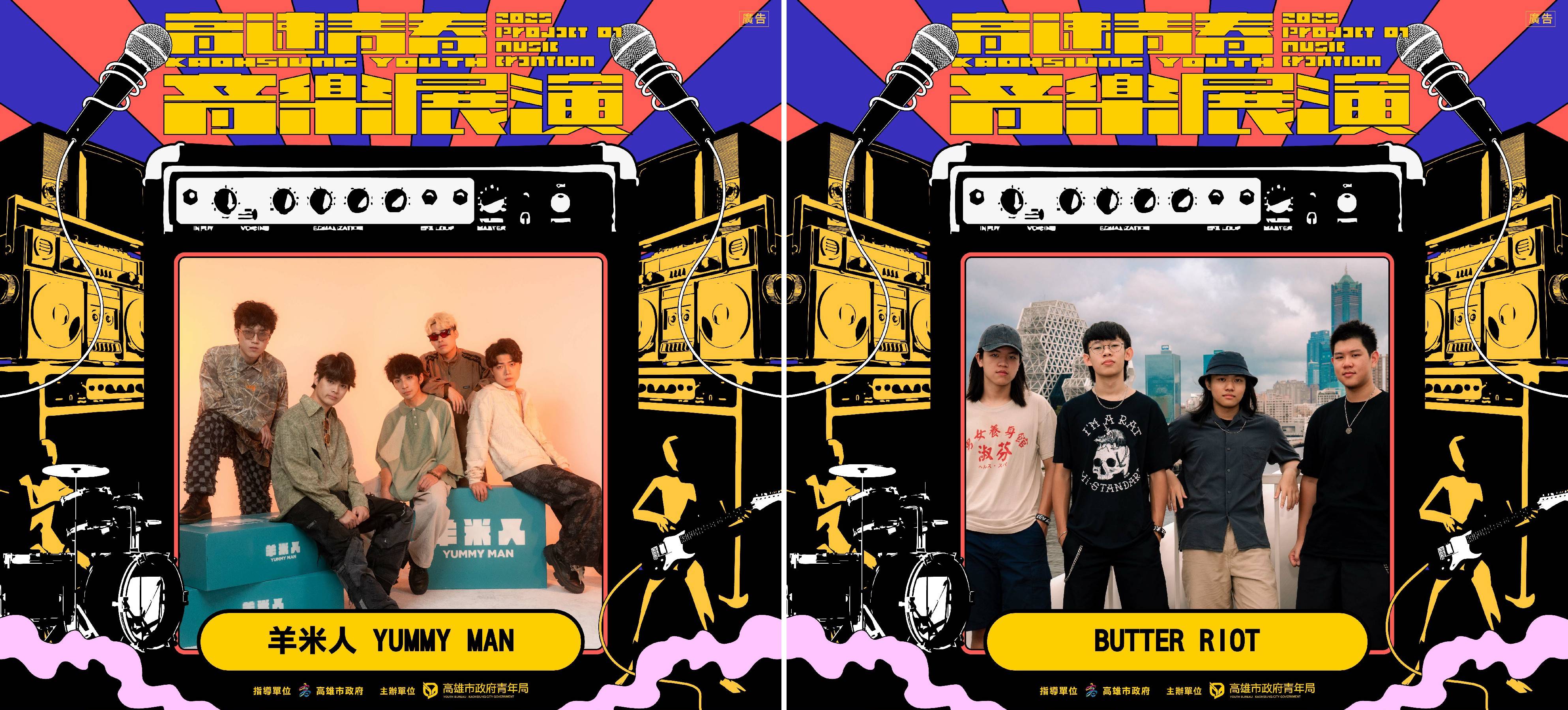 「羊米人 YUMMY MAN」以台語搖滾唱出熱血與幽默,情感濃烈;「BUTTER RIOT」則融合龐克能量,唱出當代年輕人的徬徨與希望。此次攜手滅火器貝斯手皮皮與鼓手柯光共同製作新作,將搖滾、龐克與流行元素交織,展現青春世代的創作力。