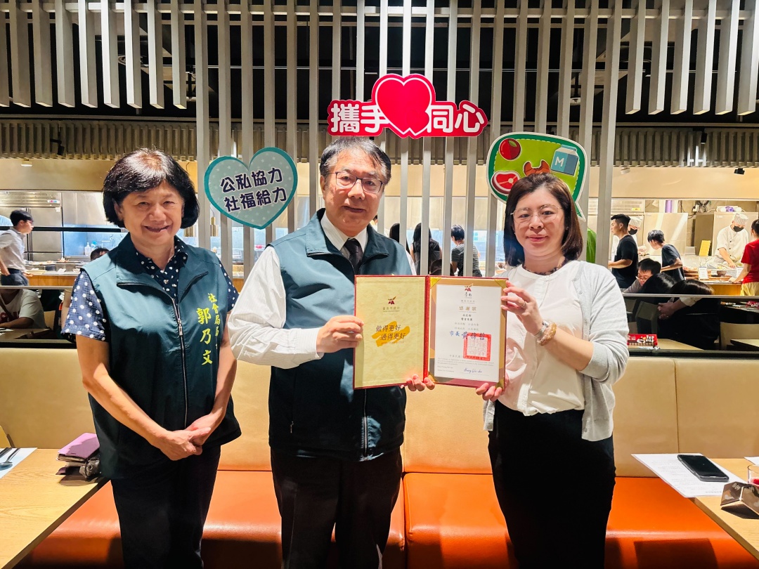 圖說:臺南市長黃偉致贈感謝狀予饗賓集團督導林佳蓉 (圖片來源/臺南市政府提供)