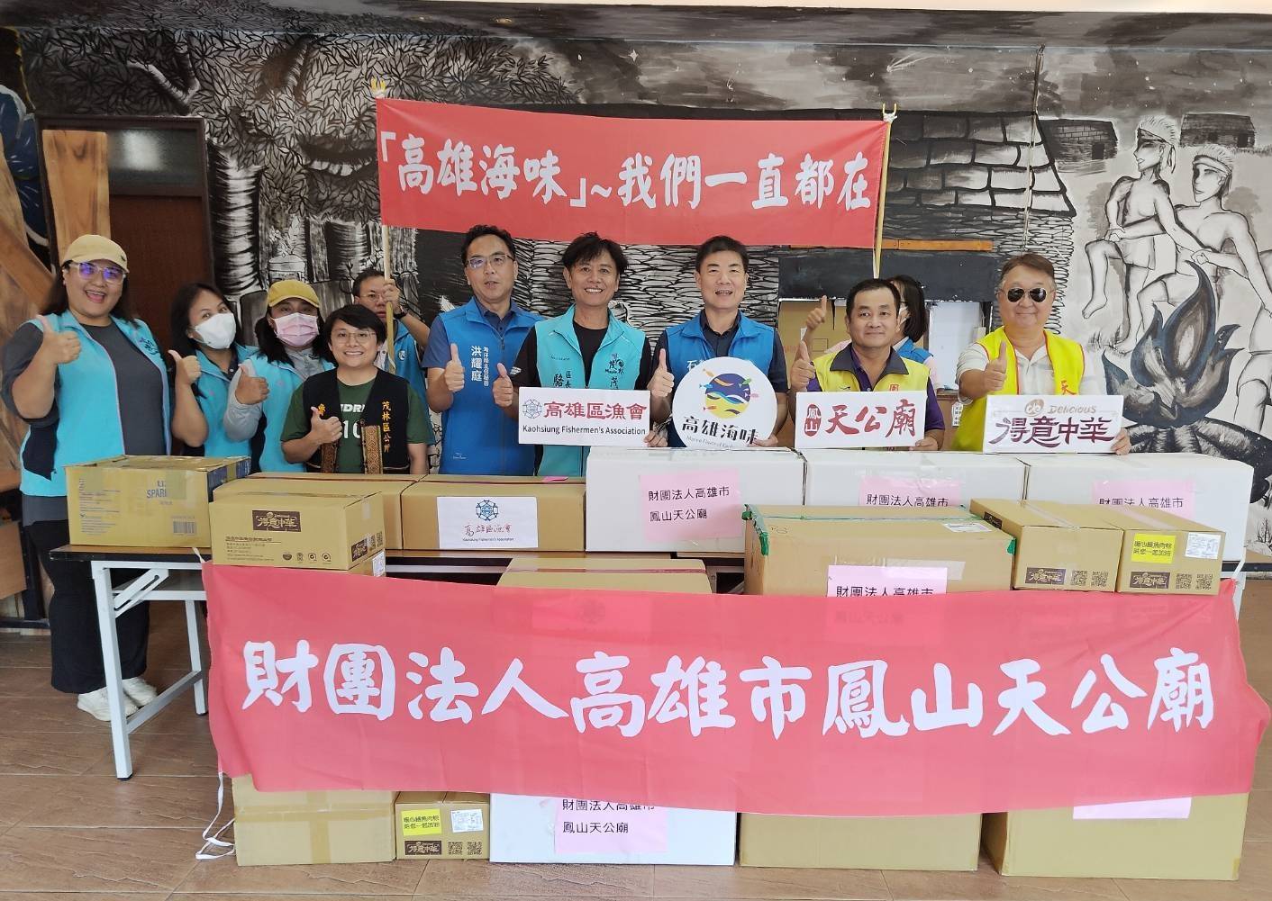 高雄市山區今年7、8月連遭颱風豪雨侵襲,部落生活與交通受阻。為協助原鄉居民強化防災整備,高雄市政府海洋局攜手高雄區漁會、在地食品業者與鳳山天公廟,共同捐贈3,060份「高雄海味」物資,送往那瑪夏、桃源與茂林等地,由各區公所代為接收,在地議員亦到場關心。
