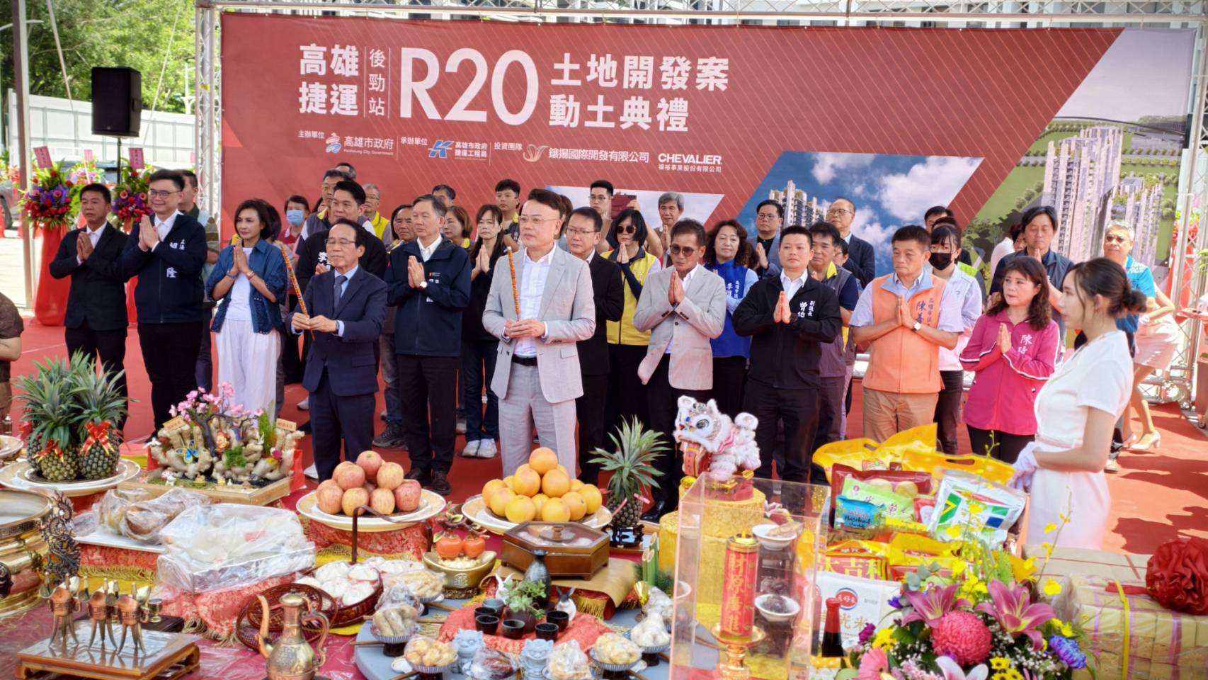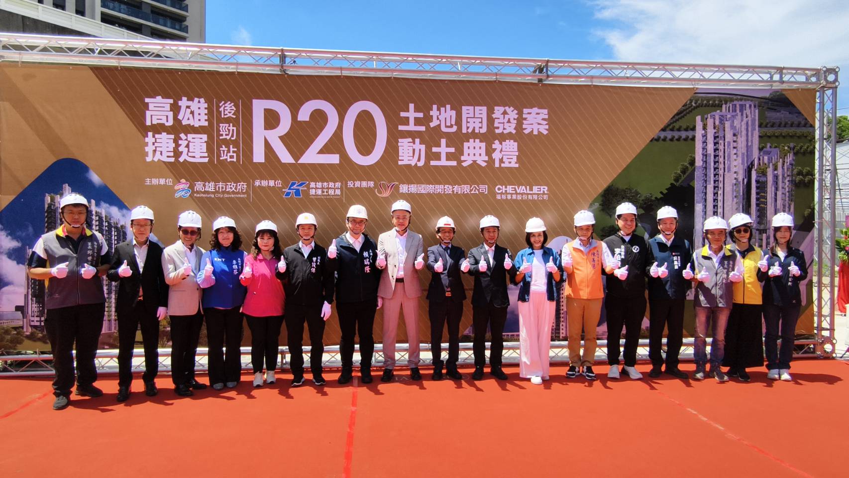 高雄捷運天際線再添新地標,高雄R20後勁站捷運聯開案21日動土,副市長林欽榮、鑲揚國際開發有限公司董事長林聰麟、福裕事業股份有限公司副董事長董上裕共同祈求工程順利推動。全案總投資金額達43億元,總開發樓地板面積約1.9萬坪,將於119年完工,打造楠梓第二行政中心及台積電周邊先進製程科技聚落。
