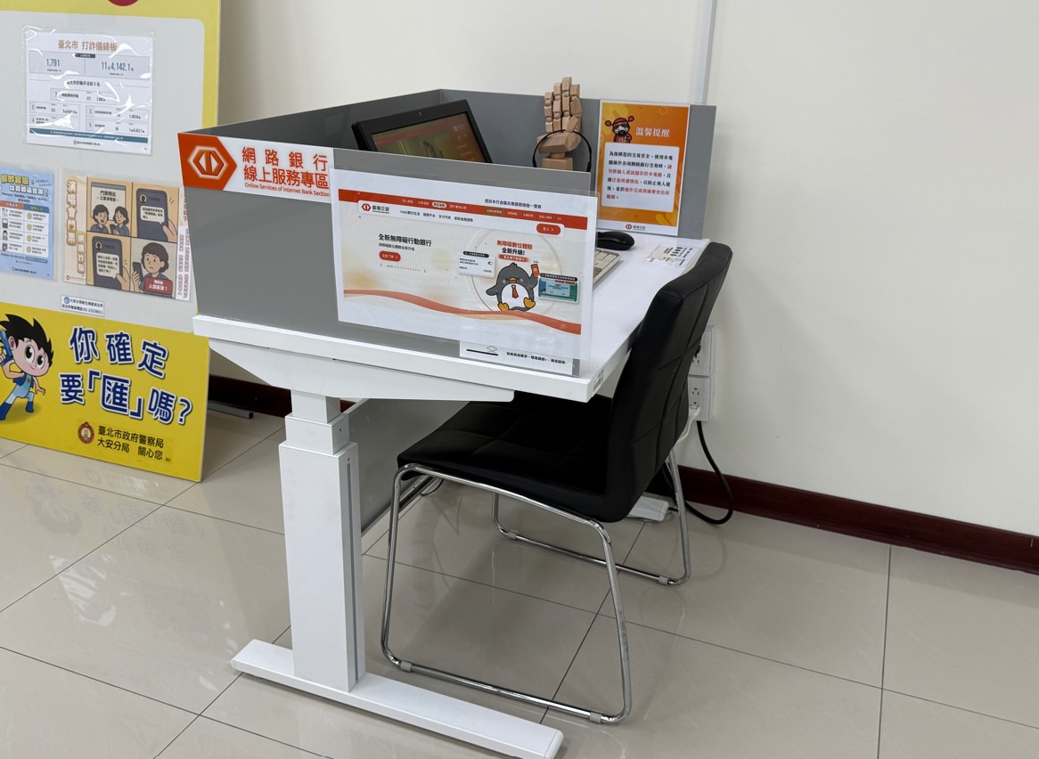 如果有需要使用網路銀行,也設有專區,且搭配升降桌(如下圖,記者李錦奇攝影),讓身障朋友也能輕鬆使用。