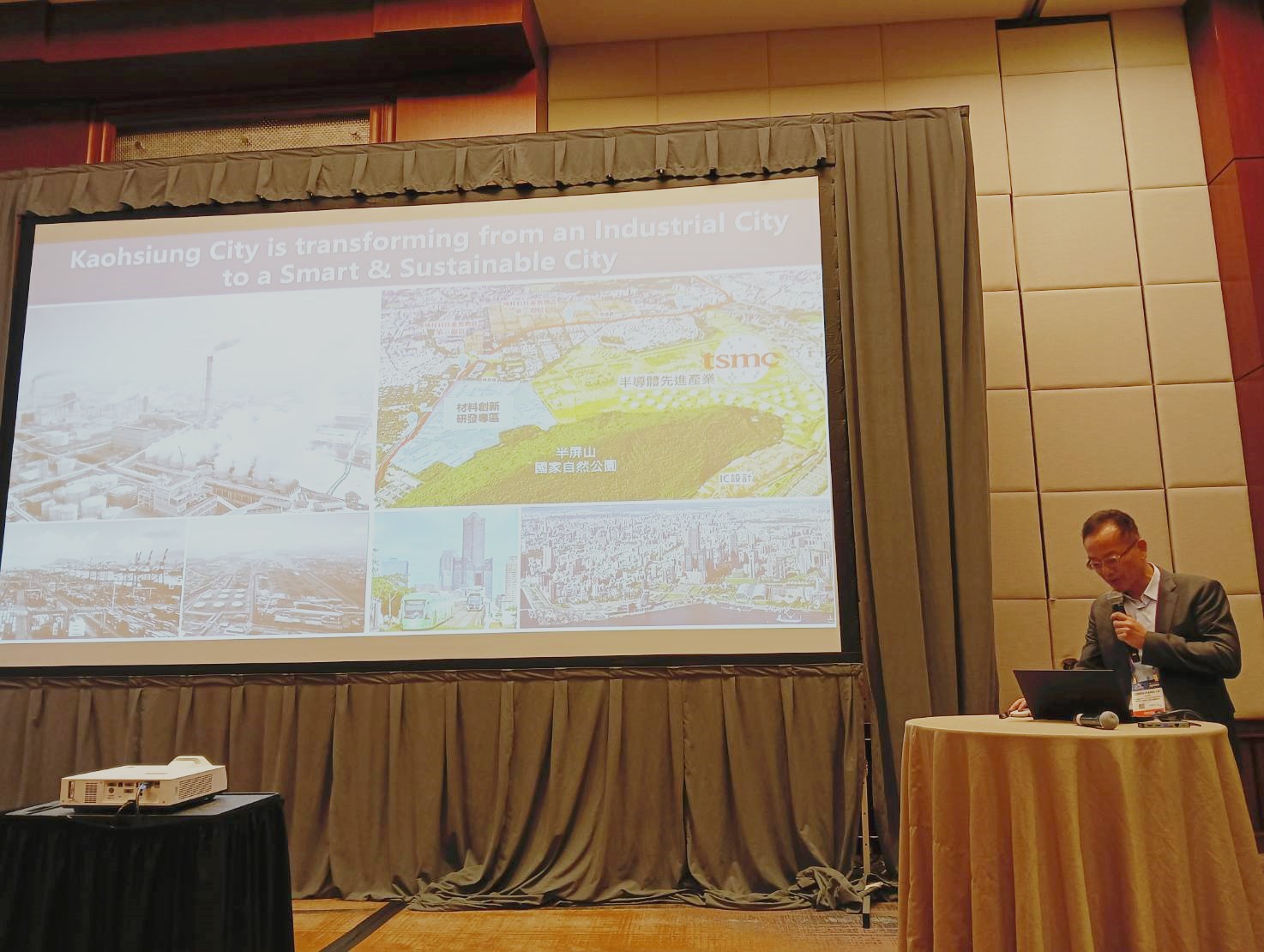 ↑圖說:高雄市交通局副局長劉建邦在會中進行專題簡報,分享高雄市近年推動智慧交通的成果與經驗。(圖片來源:高雄市交通局提供)