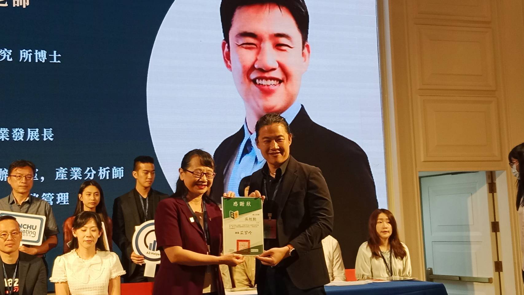 圖說:莊慧玲頒發感謝狀給來自企業界的講師。(圖片來源:韓文明拍攝)