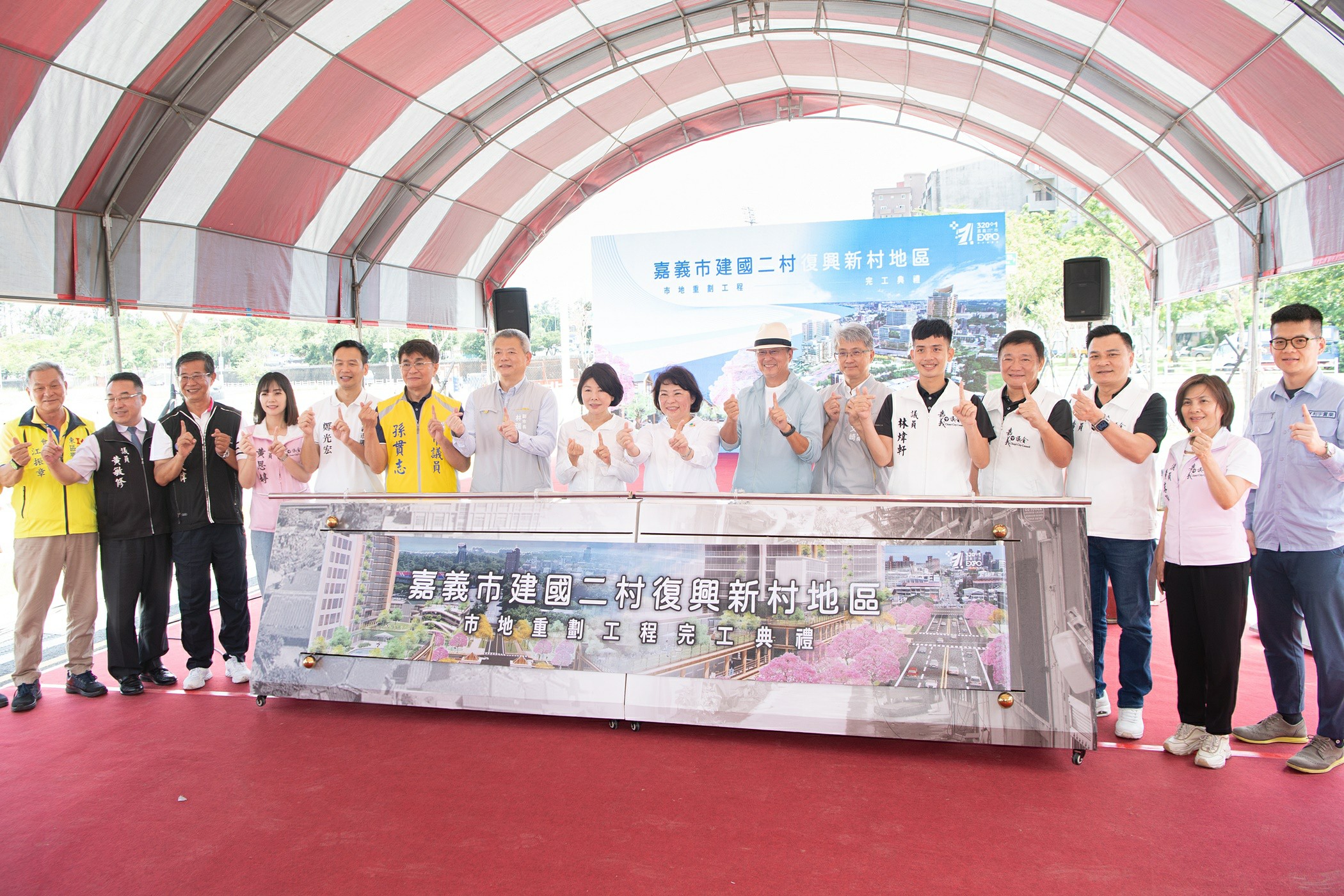 嘉義市建國二村、復興新村市地重劃工程歷時近三年,於 29 日正式完工,市長黃敏惠與市府團隊、立委、議會代表及知名製作人王偉忠共同出席竣工典禮,見證這片承載眷村記憶土地的全新蛻變。市府表示,透過重劃不僅讓東區邁向「新興商業區」發展,更注入人文底蘊,為嘉義打造兼具文化與經濟的新亮點。