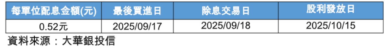 季配息的00918,將於9月18日除息,投資人若想參與本次除息,最晚要在9月17日買進,本次股利將在10月15日發放。