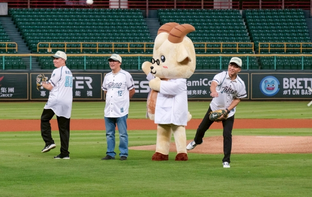 其中最引人注目的是主辦單位特別安排的「雙開球組合」,包括財團法人私立高雄醫學大學董事會董事長陳建志、高雄醫學大學副校長林志隆、高醫副院長戴嘉言及高醫大主秘黃書鴻等體系首長,全都換上台鋼訂製的棒球勁裝登場開球,平日身穿白袍的醫師們在場上的專業架式成為全場焦點,更展現高醫團隊的熱情與活力。