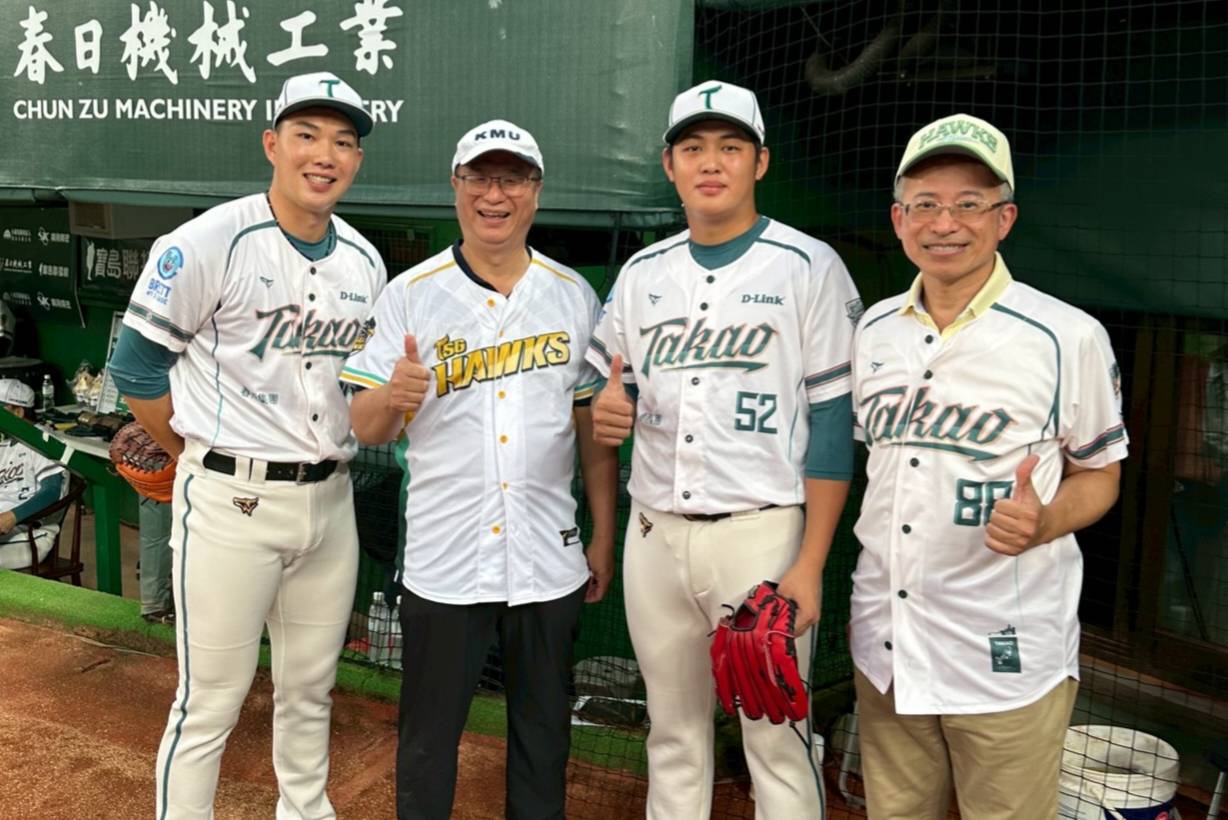 ↑圖說:高醫體系首長換上台鋼訂製的棒球勁裝。(圖片來源:高醫提供)