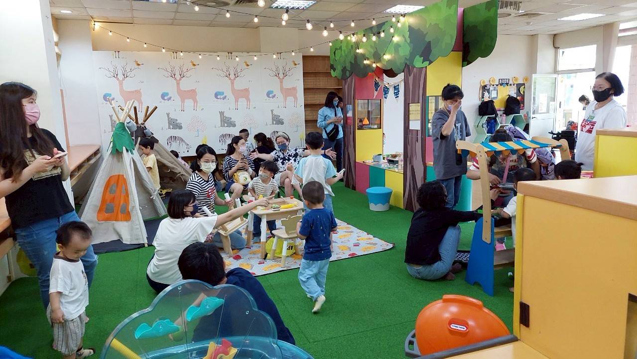 ↑圖說:婦幼及青少年中心混齡空間「萬象屋」以露營風為布置主題,深受親子家庭的喜愛(圖片來源:高雄市社會局提供)