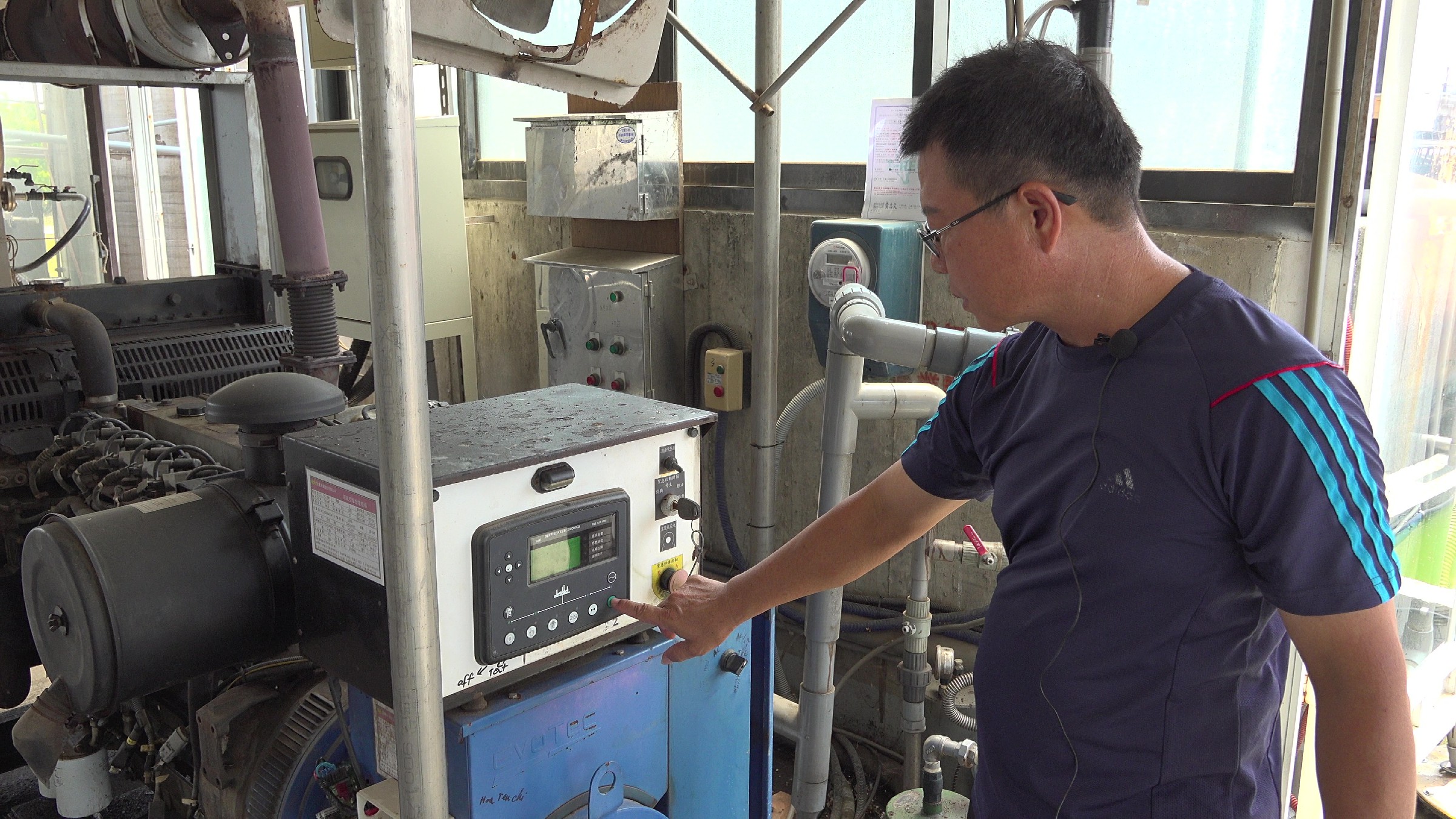 ↑圖說:志賢畜牧場利用養豬場的廢水處理,建置沼氣發電系統,每月省下不少電費。(圖片來源:記者 賴君欣 拍攝)