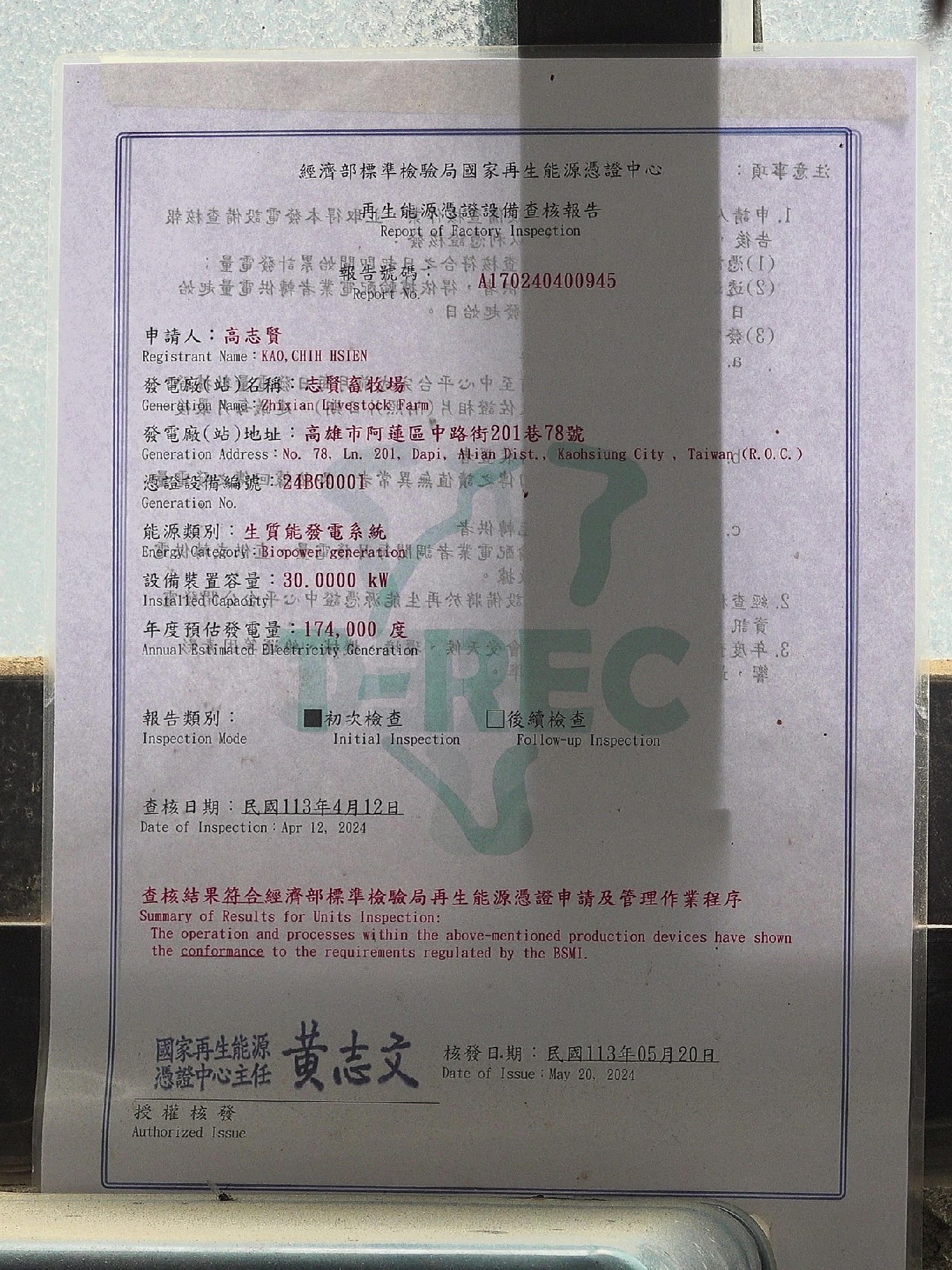 ↑圖說:志賢畜牧場是全國第一家取得「生質能發電再生能源憑證」的民營養豬場,除了自用省電,更能將憑證交易換取額外收益。(圖片來源:記者 賴君欣 拍攝)
