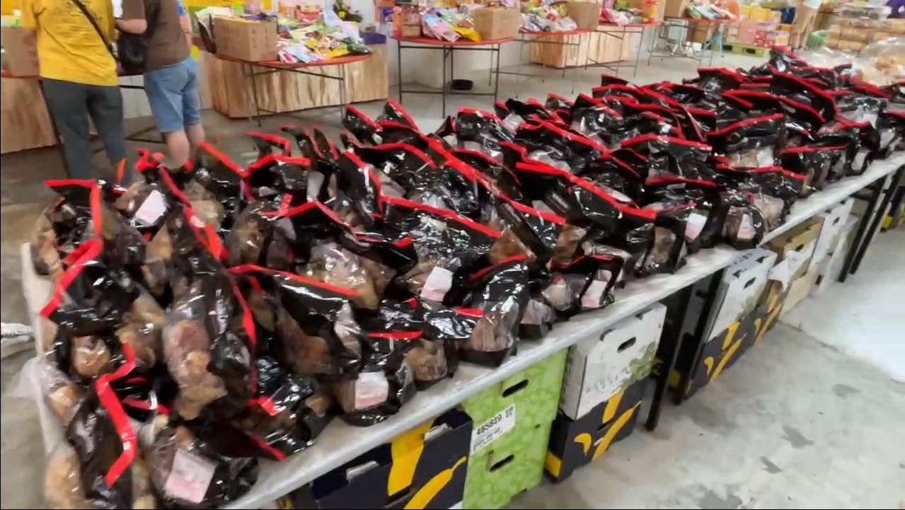 除了烤雞,地藏王廟還同步採購麵包、餅乾、飲料,今年更把水果也列入清單。廟方坦言,小朋友對傳統三牲並不感興趣,但看到好市多的烤雞、可頌、飲料就眼睛一亮,普渡後分食時,大家都吃得開心。