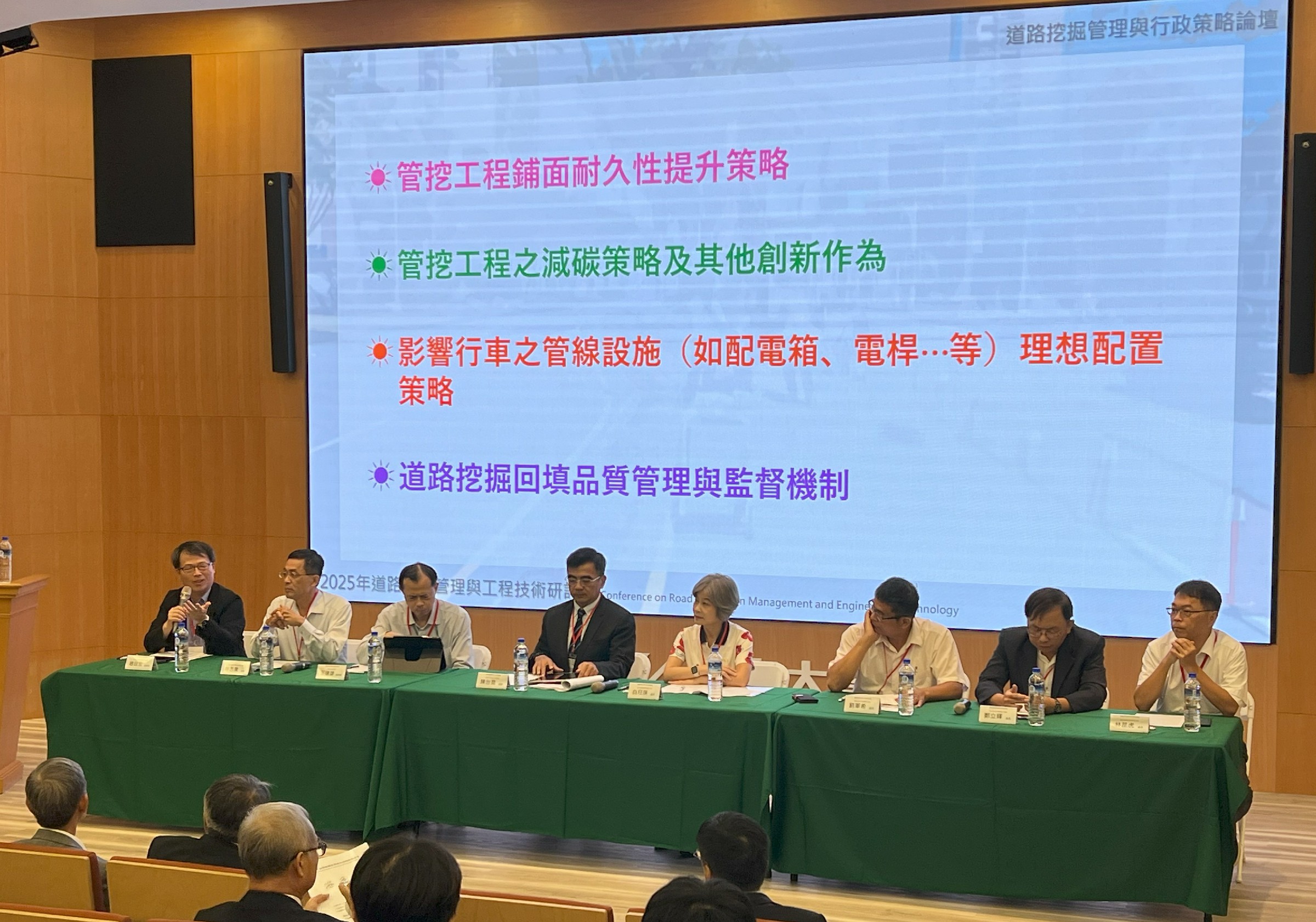 研討會同時舉辦六都工務局與台電、中油、中華電信等管線單位的論壇,針對重複開挖與管線協調困難等問題交換經驗。內政部國土管理署代表則呼籲持續推動管線數位化與纜線下地,以因應極端氣候挑戰。