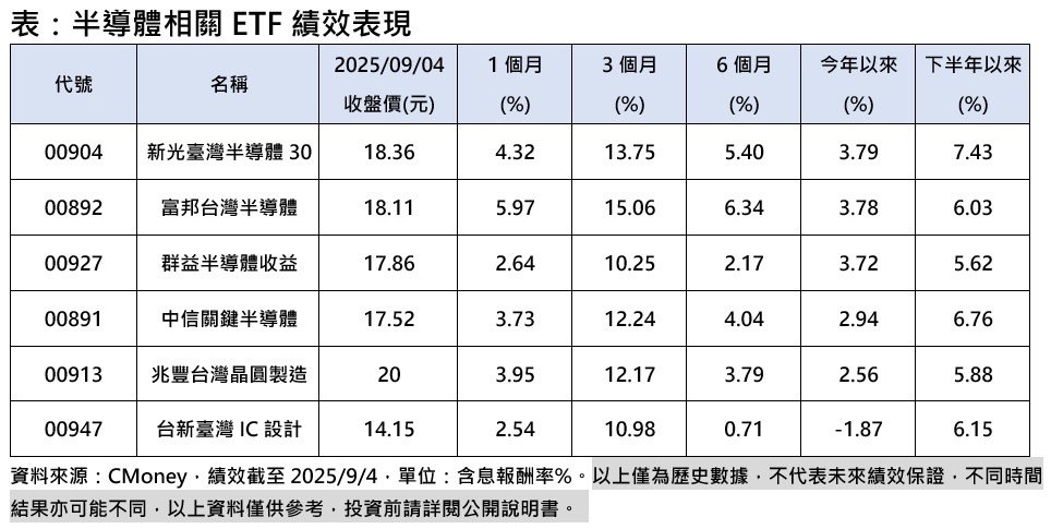 新光投信建議,投資人可以趁9月為美股、台股全年最差月「逢低進場」,優先卡位半導體ETF先超前布局,跟隨AI新應用瘋潮、科技新品上市潮、降息資金抬轎潮三連發,透過半導體ETF有望同步掌握全球AI基建與AI 應用兩大成長商機,大啖全球AI半導體產業加速擴張紅利。