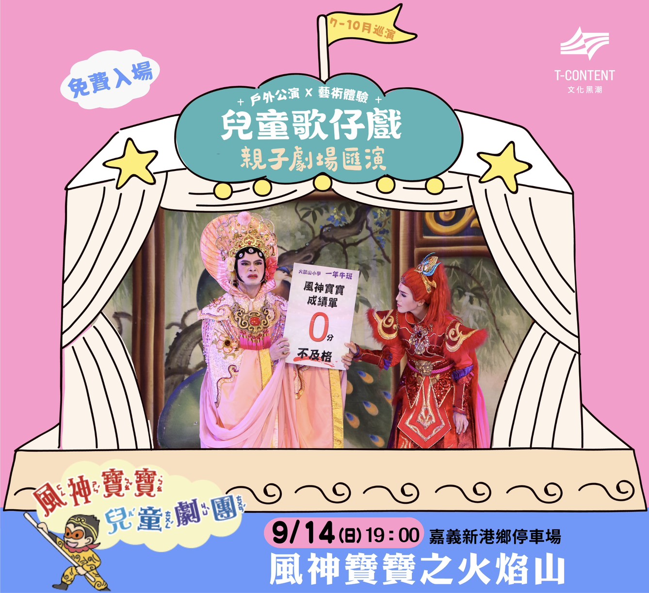 歌仔戲將以全新姿態走入嘉義,為親子帶來一場寓教於樂的文化饗宴。由財團法人臺灣歌仔戲推廣基金會及國立傳統藝術中心主辦的「2025兒童歌仔戲—親子劇場匯演」,將於9月14日在新港鄉公所停車場登場。演出由「風神寶寶兒童劇團」帶來創新改編的《風神寶寶之火焰山》,以《西遊記》火焰山借芭蕉扇的經典橋段為藍本,結合奇幻想像與現代互動元素,打造適合闔家觀賞的舞台魅力。