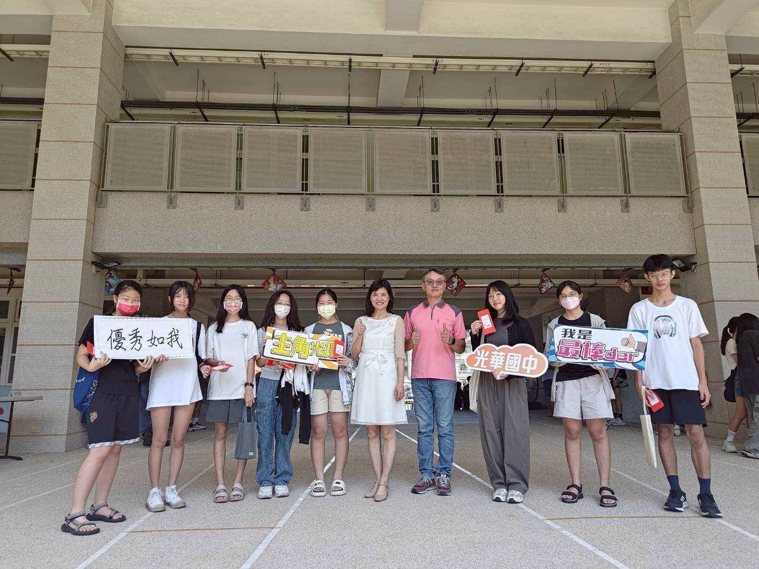 圖說:王小芬(右五)頒獎給初選入圍的同學。(圖片來源:光華國中提供)
