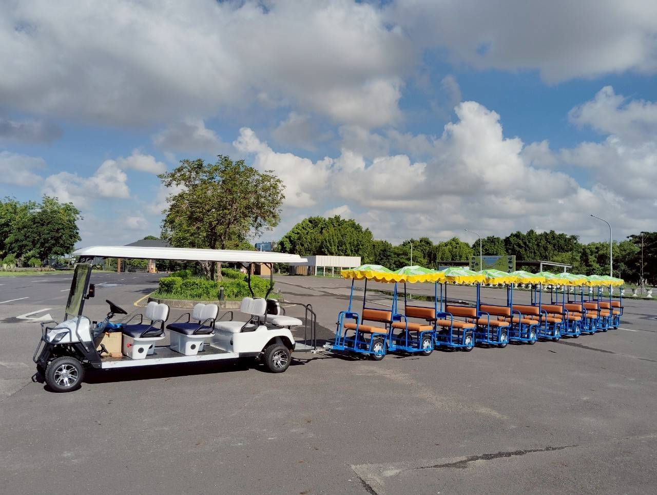 圖說:遊客可搭乘全新電動遊園車環湖遊覽,感受虎頭埤秋日風光 (圖片來源/台南市觀旅局提供)