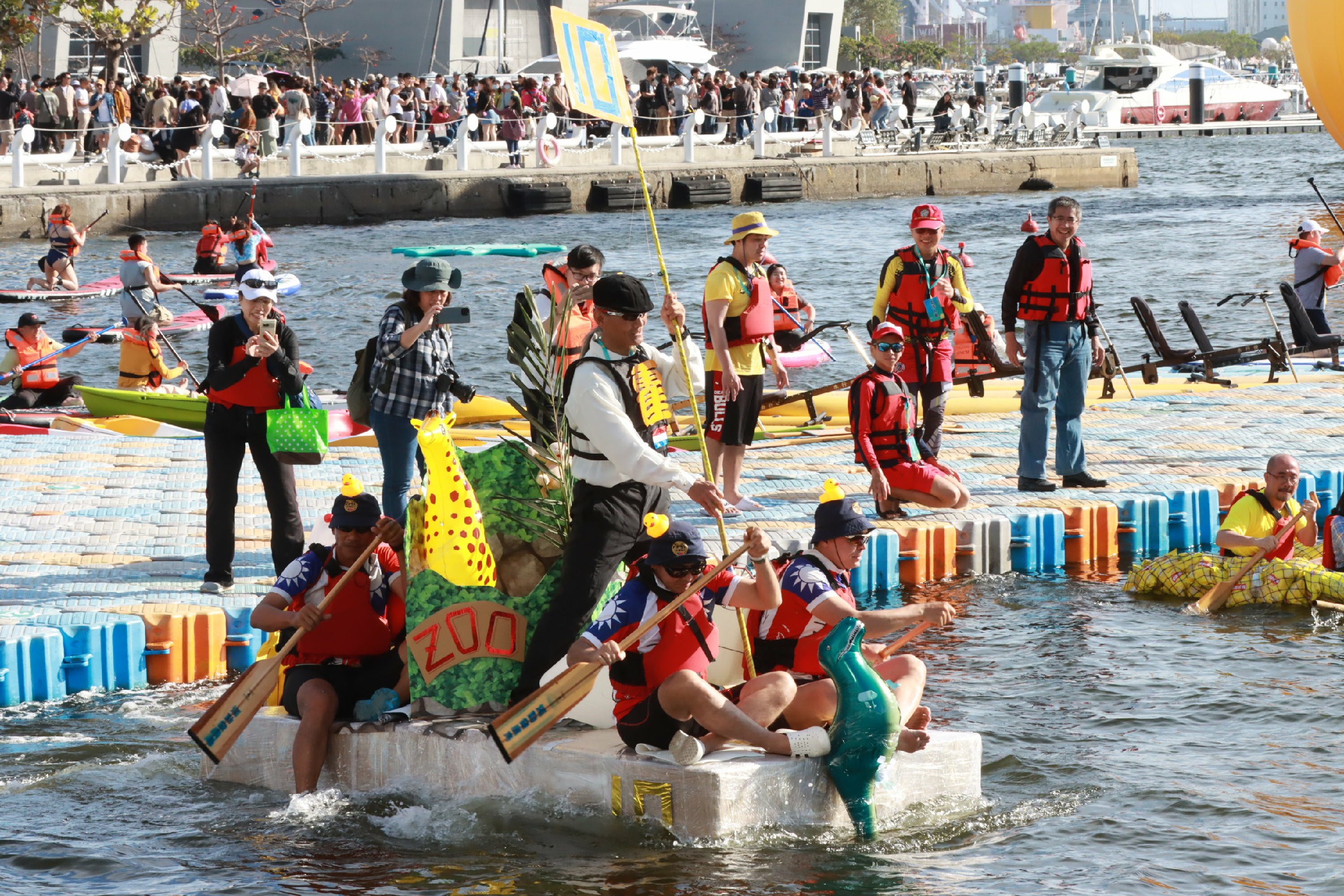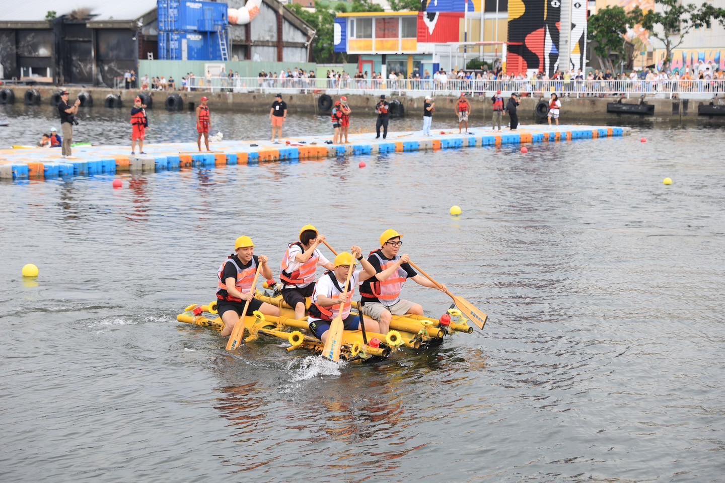 ↑圖說:2024年大港造筏市長陳其邁也親自下水競技。(圖片來源:高雄市運發局提供)