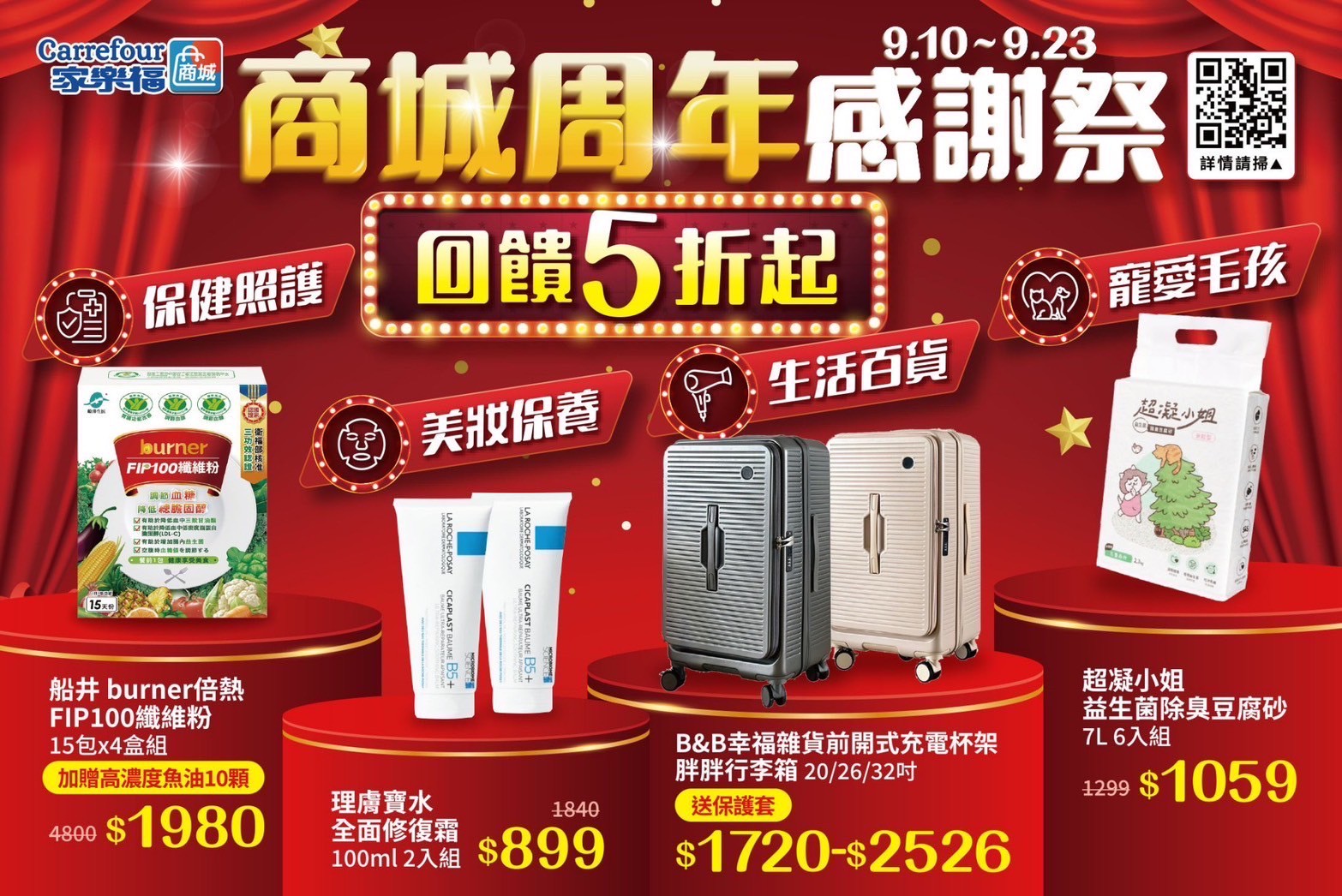 ↑圖說:家樂福線上購物歡慶10周年慶消費滿千送千大回饋。(圖片來源:家樂福提供)