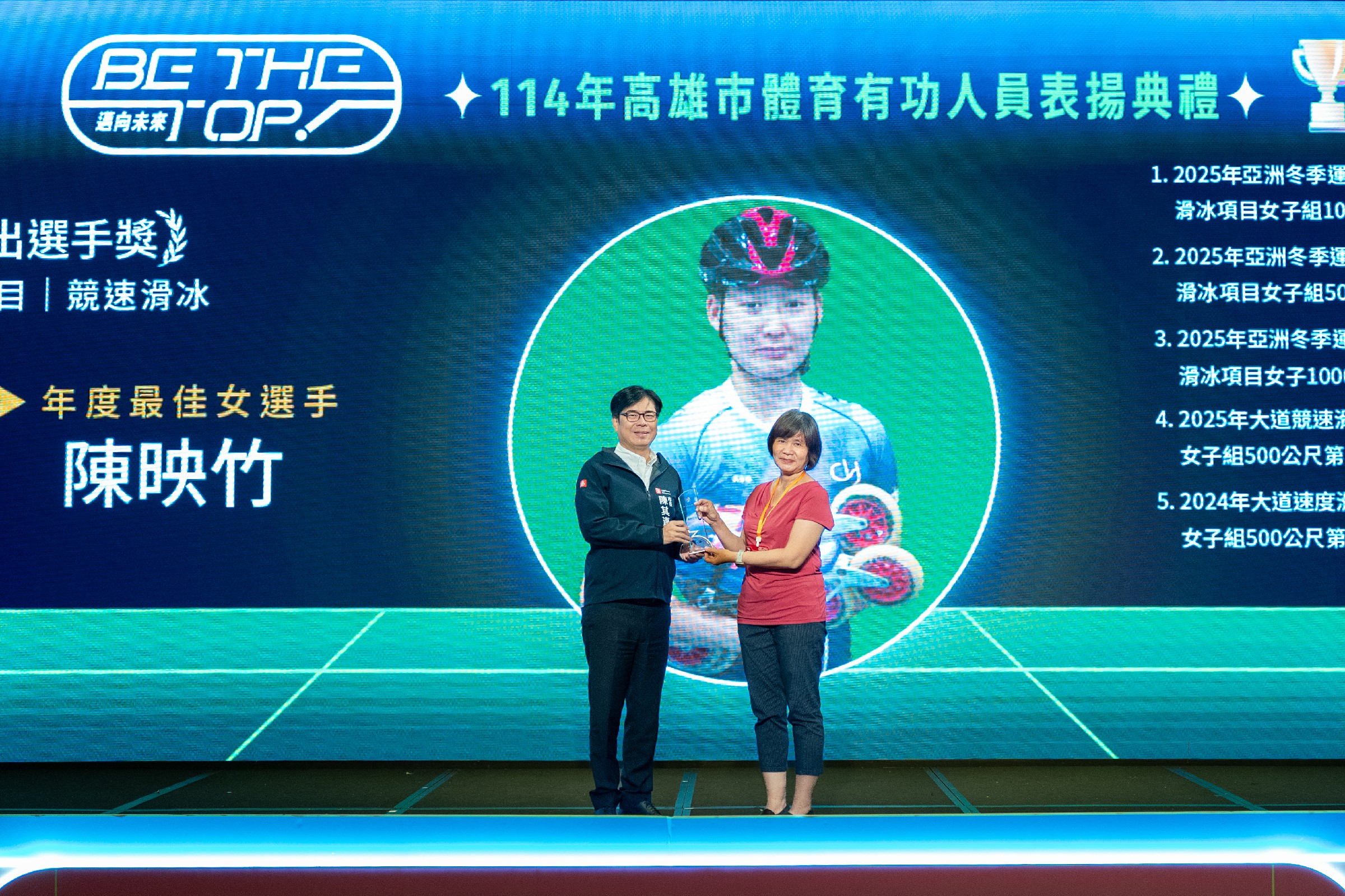 「年度最佳男選手」由文山高中吳慕安獲得,他不畏聽覺障礙,在2024年世界聽障青年運動會200公尺跑進國際舞台;「年度最佳女選手」則頒給陳映竹,她從競速滑輪跨足大道速度滑冰,最終奪下亞洲冬季運動會女子100公尺銅牌,為台灣寫下35年來的歷史紀錄。