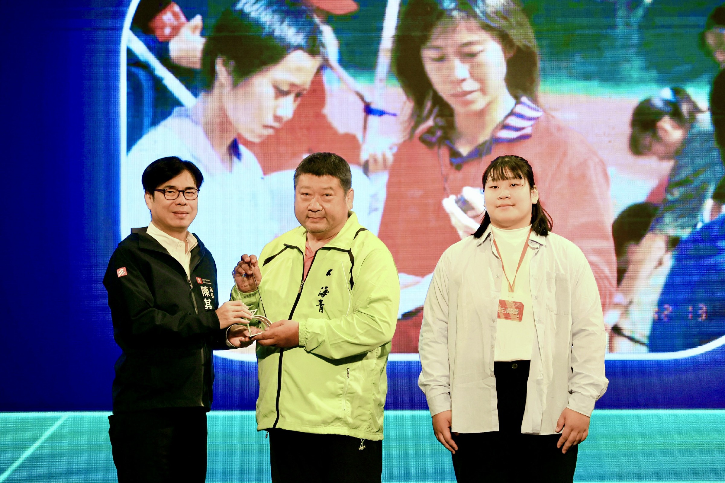 ↑圖說:「年度最佳女選手」為陳映竹,由媽媽戴玉停女士代為領獎。(圖片來源:高雄市運發局提供)