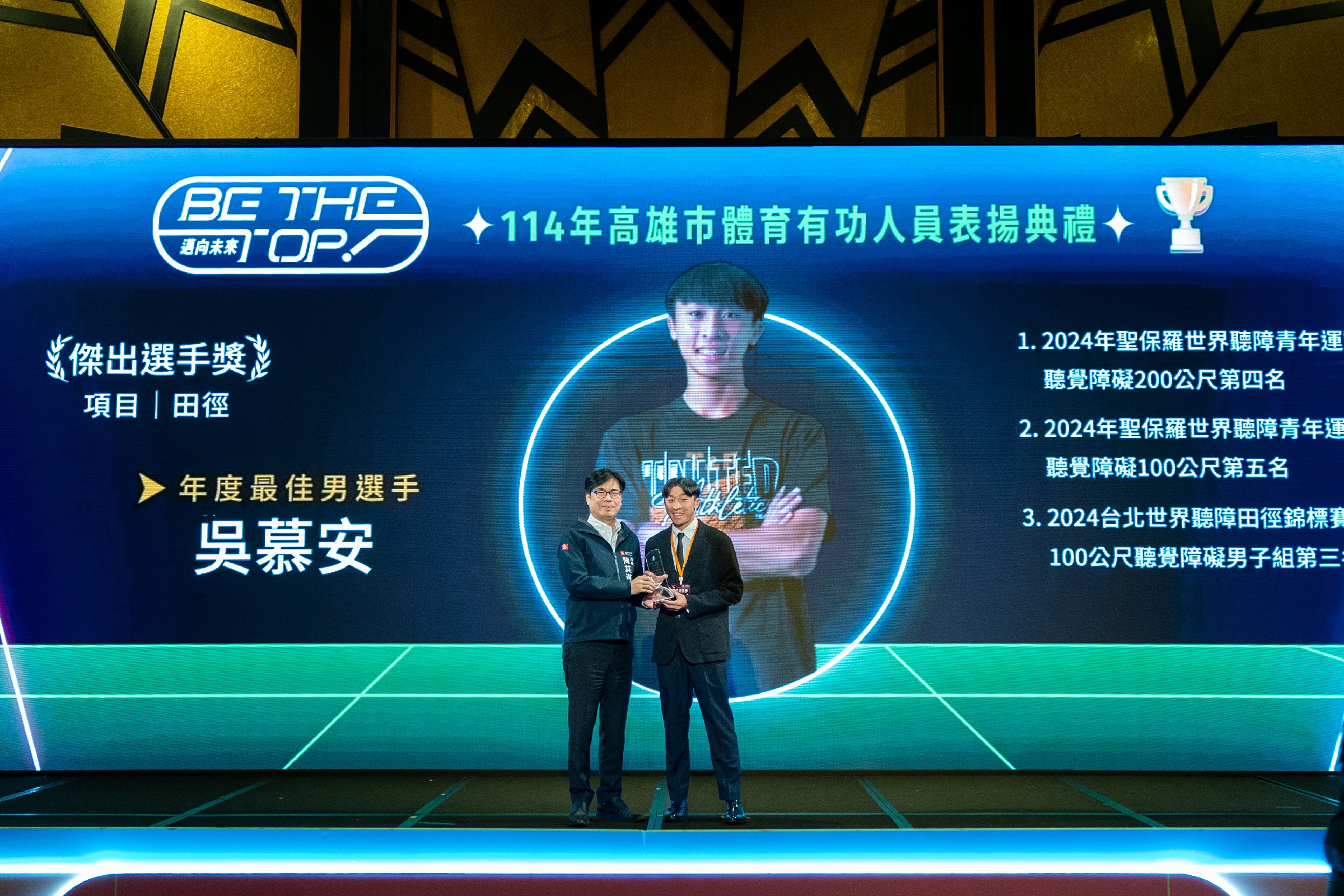 ↑圖說:「年度最佳男選手」為文山高中吳慕安。(圖片來源:高雄市運發局提供)