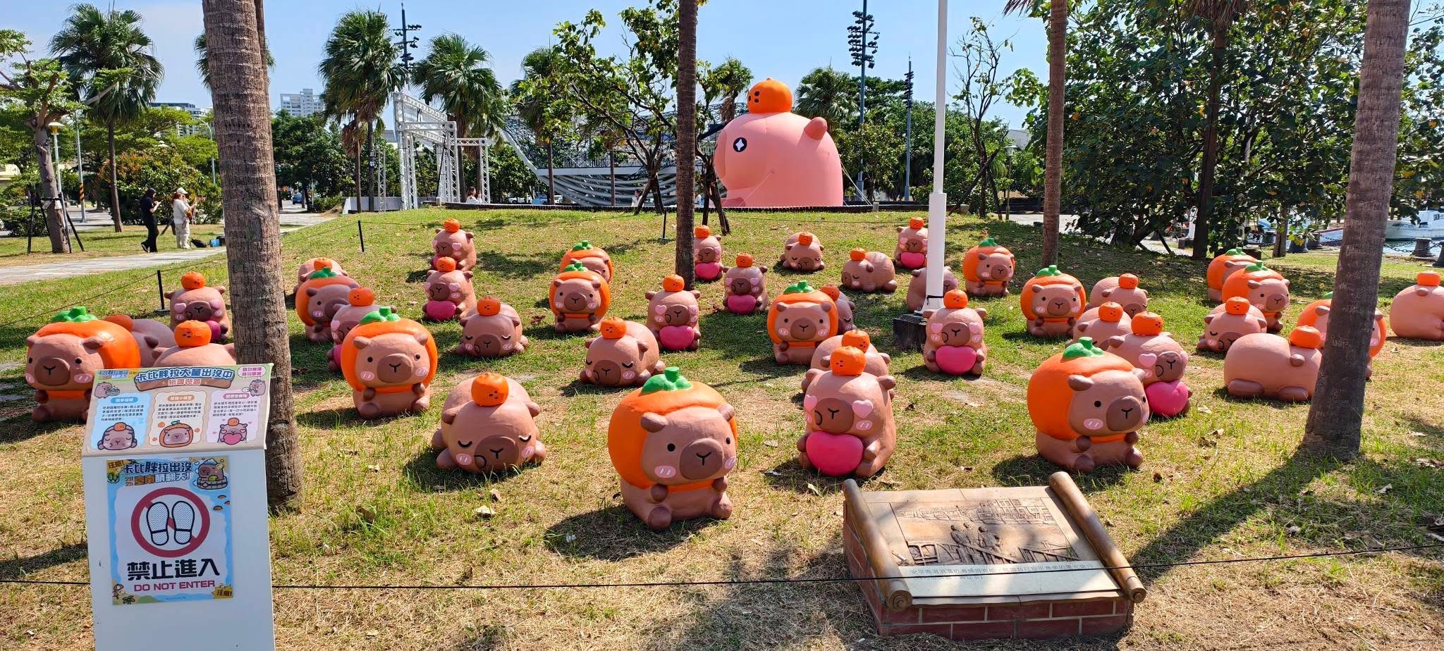 活動展區以療癒系角色「卡比胖拉 Cabypara」為主角,展出包含1座高達12米的水上巨型氣偶「慢活湯柑」、2座5米高的陸上氣偶「芒果午憩」與「滿福擔仔」,以及50座(柑橘小精靈、戀戀臺南味、甜夢橘眠)造型各異的紙雕裝置,夜間還有燈光投影搭配專屬洗腦旋律,讓大小朋友直呼「可愛爆擊」。