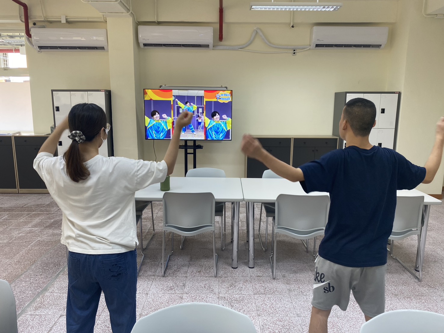 ↑圖說:教保員帶著身障者做運動,維持體能。(圖片來源:高雄市社會局提供)