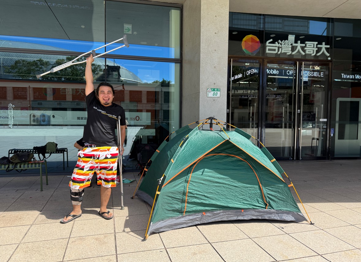 黃先生是在昨(17)晚6點先來勘場,吃完晚餐就帶著帳篷、椅子進駐門市門口。而且,黃先生前陣子才因車禍受傷、膝蓋十字韌帶斷裂,但他笑說:「就算受傷也要來,這是跟自己的約定。」