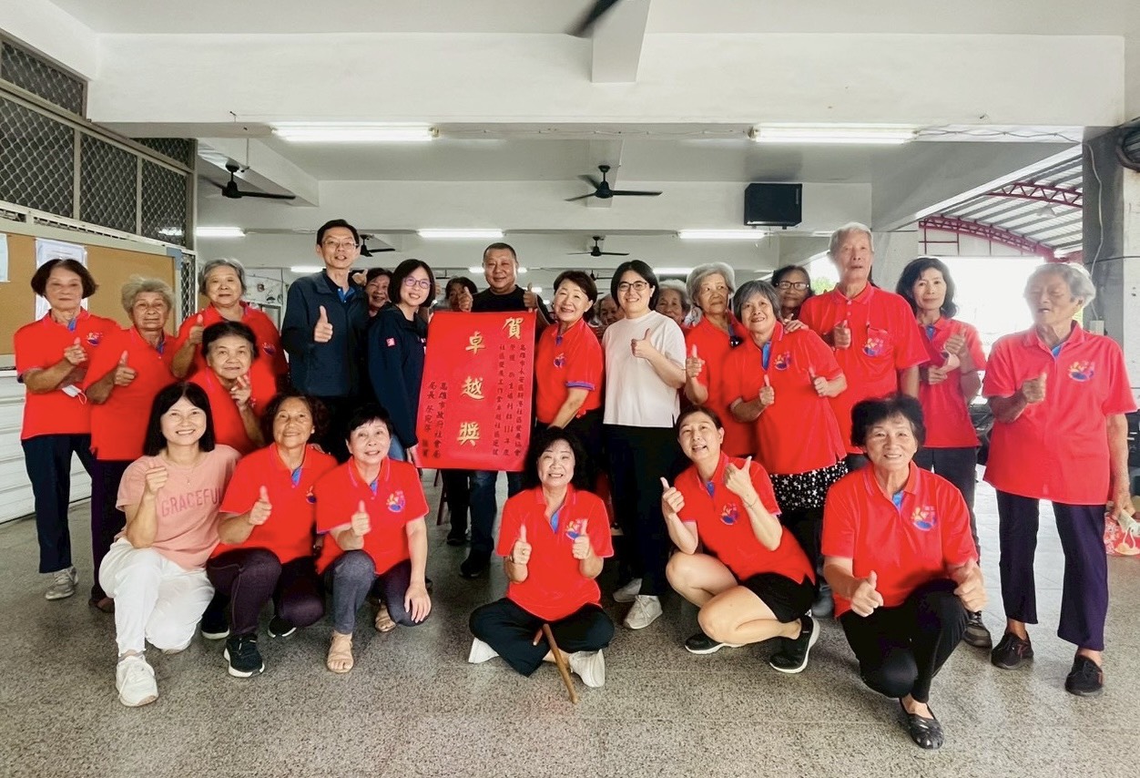 ↑圖說:前鎮興邦社區獲得甲等獎蔡宛芬局長張貼紅榜慶賀,志工及長輩深感榮耀。(圖片來源:高雄市社會局提供)