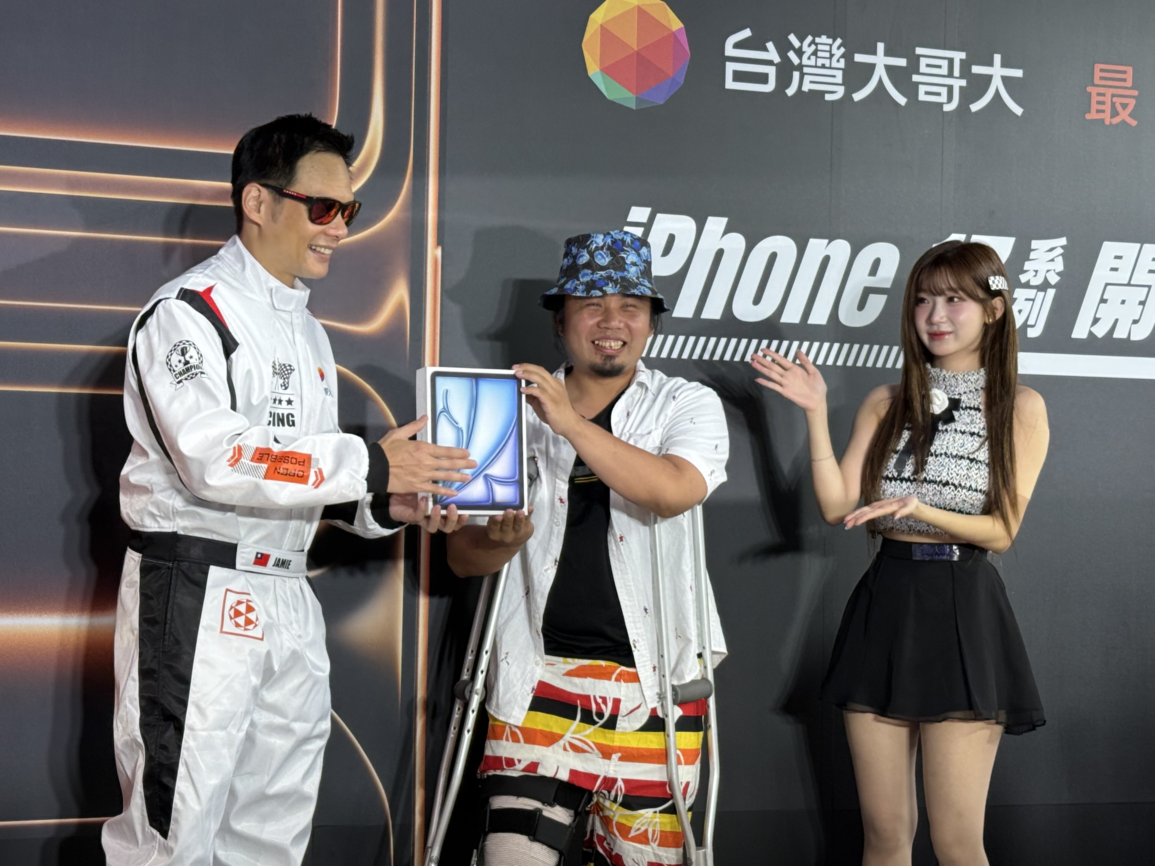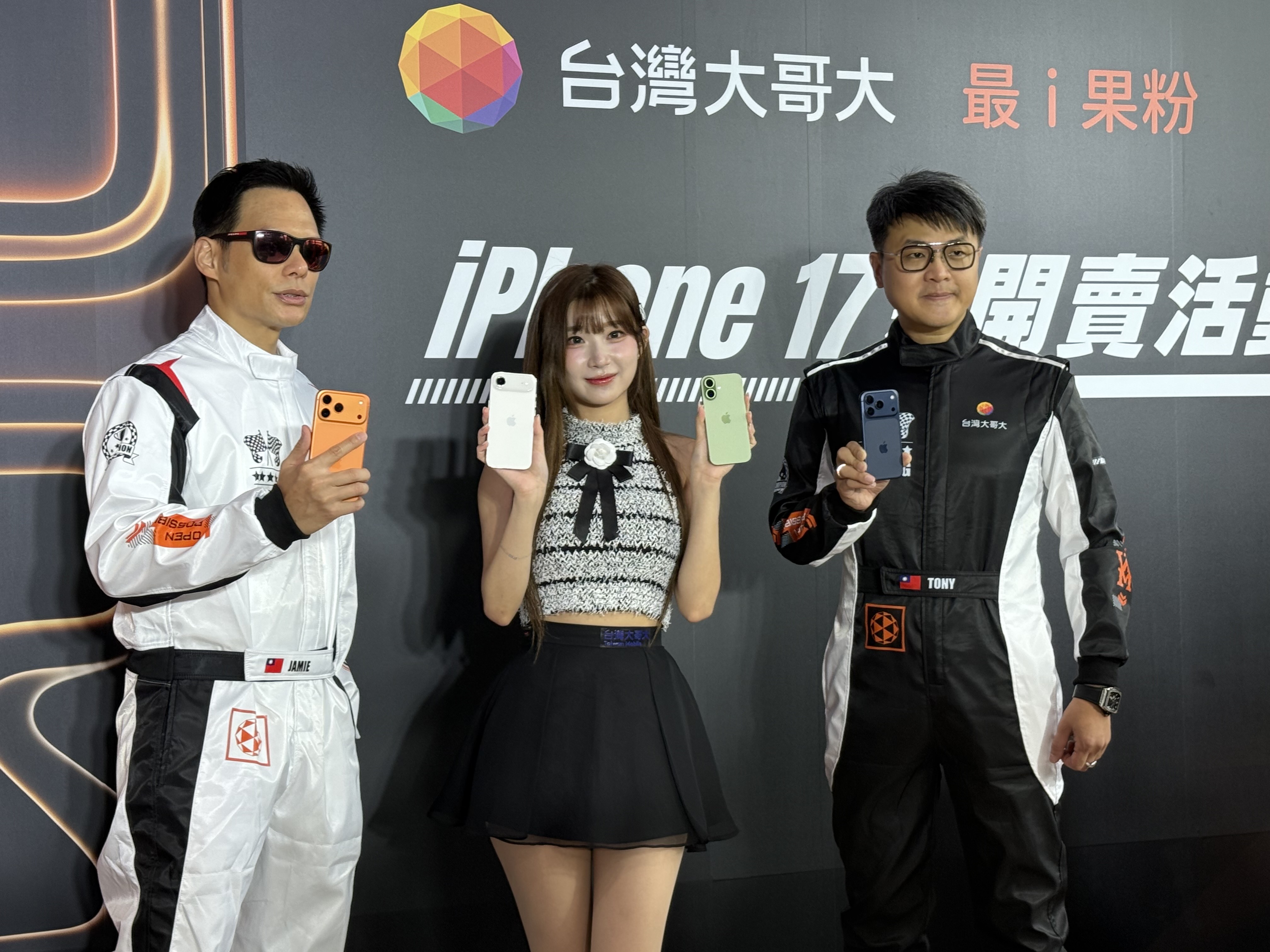 ▼圖說:台灣大請來李珠珢站台,凸顯今年開賣iPhone 17全系列機款及iPhone Air,祭出的大獎「F1日本大獎賽尊榮朝聖之旅」。(圖/記者李錦奇攝影)