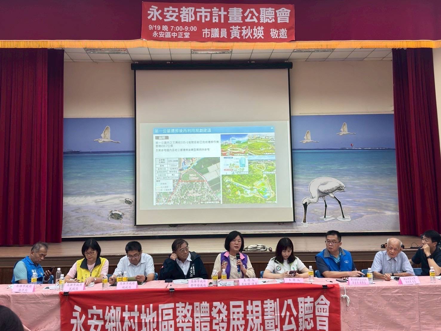 近期興達電廠失火,永安區居住環境成為全國焦點,加上縣市合併以來北高雄沿海地方發展躊躇不前,高雄市議員黃秋媖及李雅慧長期關心海線發展,近年持續推動都是計畫檢討,希望以永安區先行成為北高雄海線發展典範,特於19日舉辦「永安鄉村地區整體發展規劃」公聽會,整合民意推動永安區轉型邁向新格局。