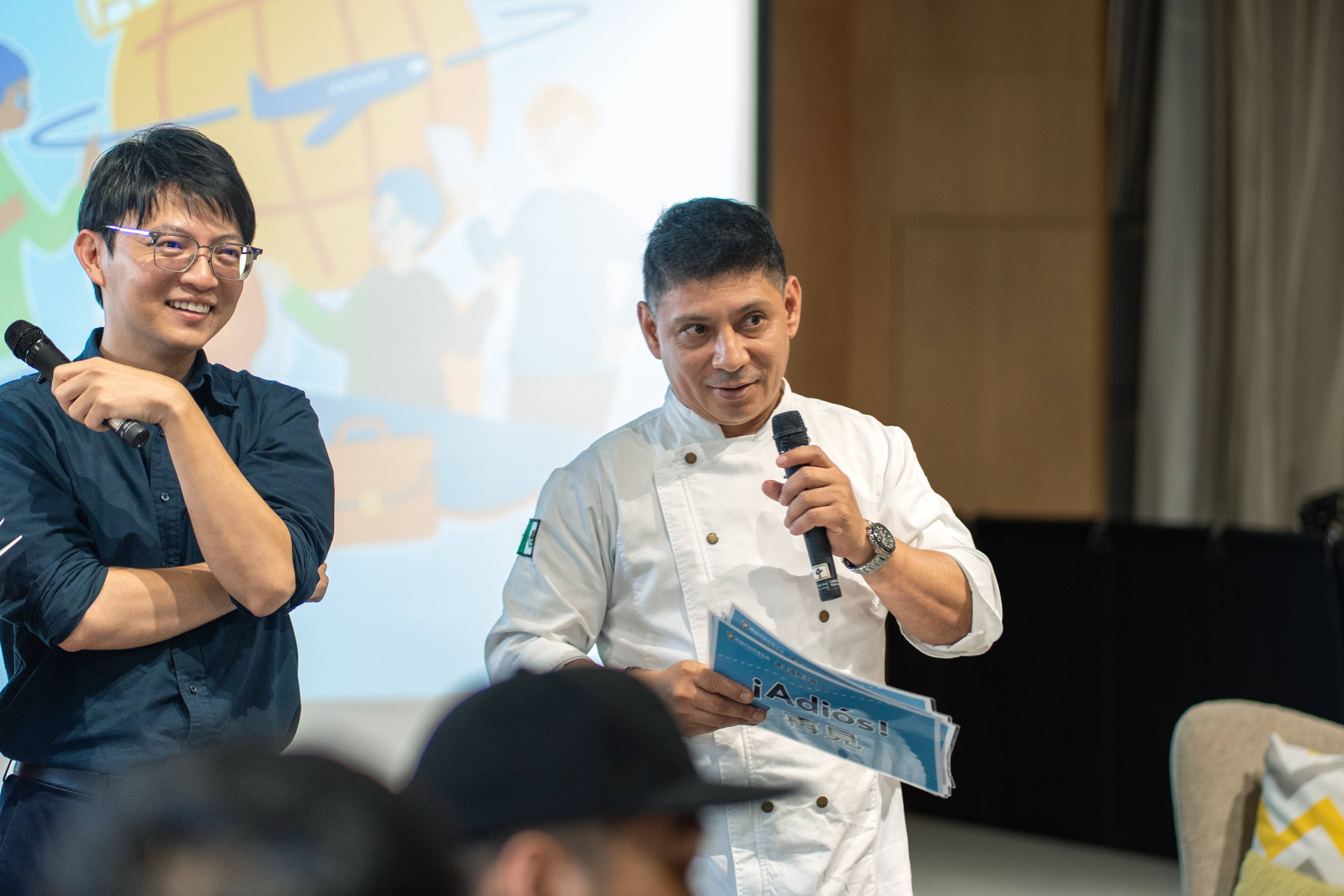 ↑圖說:第二場國際沙龍,下半場由墨西哥主廚 Manny(右)主講,高市青年局長林楷軒(左)也到場與青年交流,現場氣氛熱烈。(圖片來源:高雄市青年局提供)