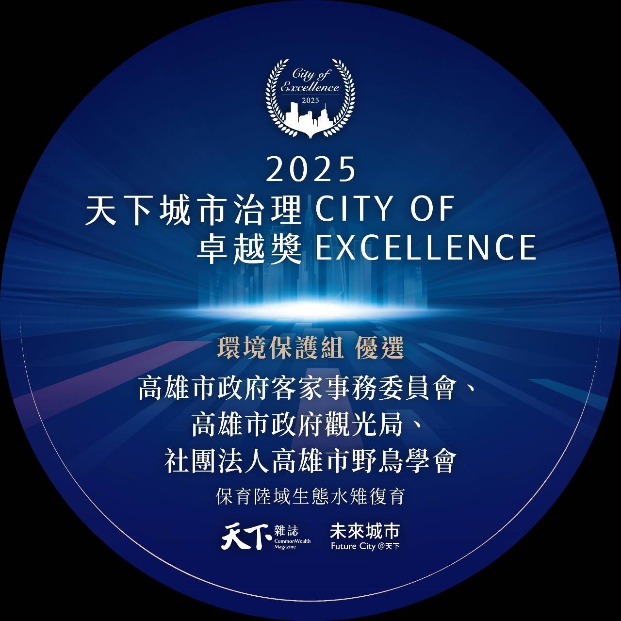 高雄市政府客家事務委員會以「保育陸域生態水雉復育」專案,榮獲《天下雜誌》2025城市治理卓越獎環境保護組優選。評審團肯定此專案以文化為根、生態為本、社區為主體,成功串聯農業、文化與教育資源,打造獨具特色的多元共治模式。