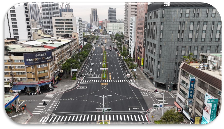 交通局以「零死亡願景 Vision Zero」為核心,推出「交通工程三箭」,包括左轉附加車道、標線型圓環與停車帶保護設計。其中,全台首座標線型圓環設於前鎮文橫三路口,事故率降低近七成;博愛一路則率先引入停車帶保護自行車道,讓騎士與行人各有獨立路權,更添通行安全。