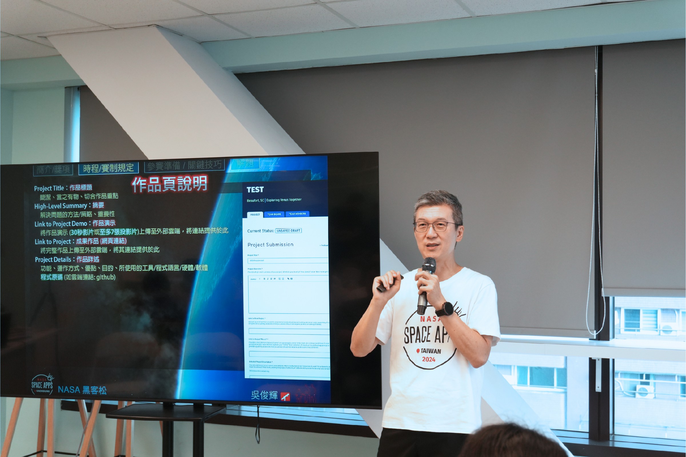 說明會由NASA黑客松台灣區總召吳俊輝教授與TASA大空教育總監鄭現生介紹賽事規則與精神,並邀請2021年全球冠軍「AnisCuff」與2023年金牌隊伍「quality over quantity」分享經驗。現場也安排新創廠商展示AI、大數據及無代碼平台技術,氣氛熱絡,展現創新動能。吳俊輝表示,高雄不僅是國際港都,也是新創能量快速聚集的城市,透過NASA黑客松,青年團隊將能把地方創意帶上國際舞台。