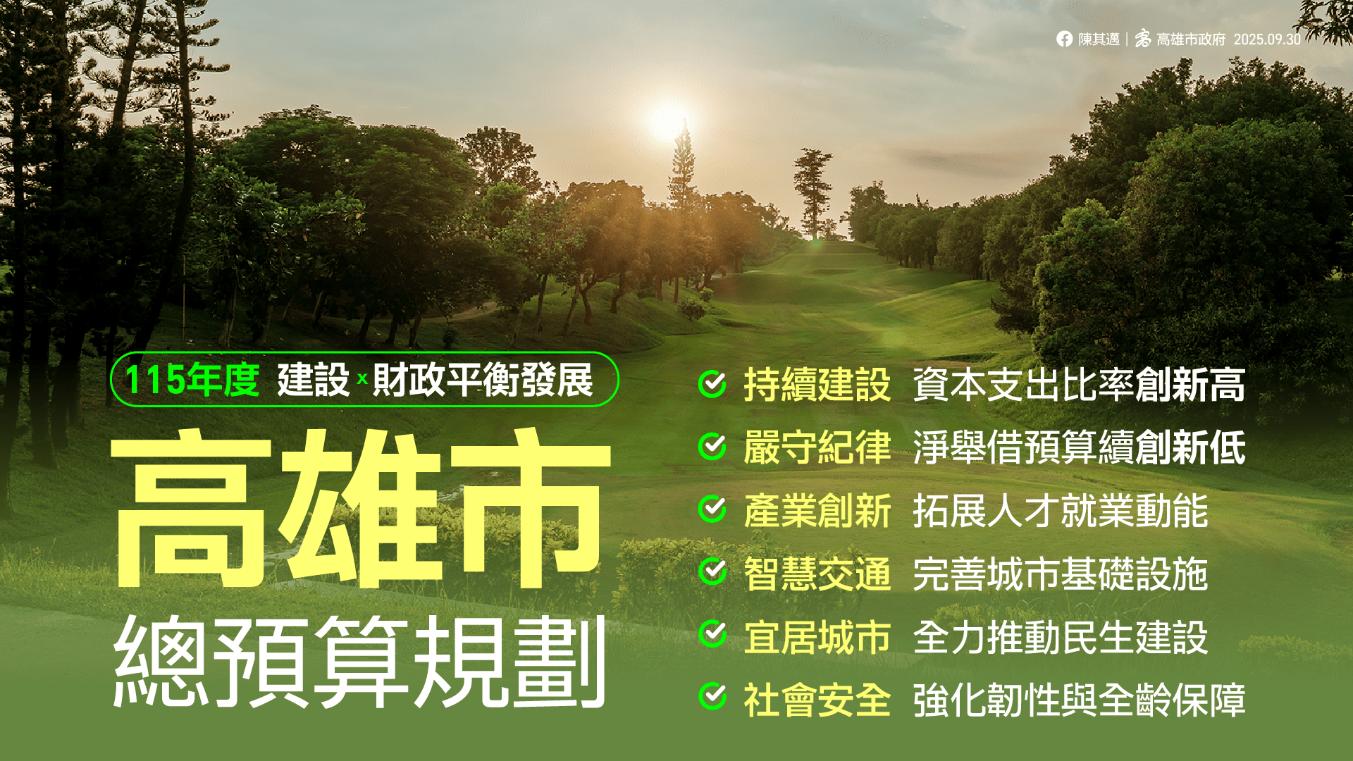 在社會照顧方面,市府預算達180億元支應老人、兒少與弱勢救助,長照經費亦達102億元,建構全齡照顧體系。市府強調,本次預算編列嚴守公共債務與財政紀律規範,資源運用更聚焦建設與民生,將持續以「市民優先」推動永續與轉型發展,讓高雄在國際競爭中穩健前進。