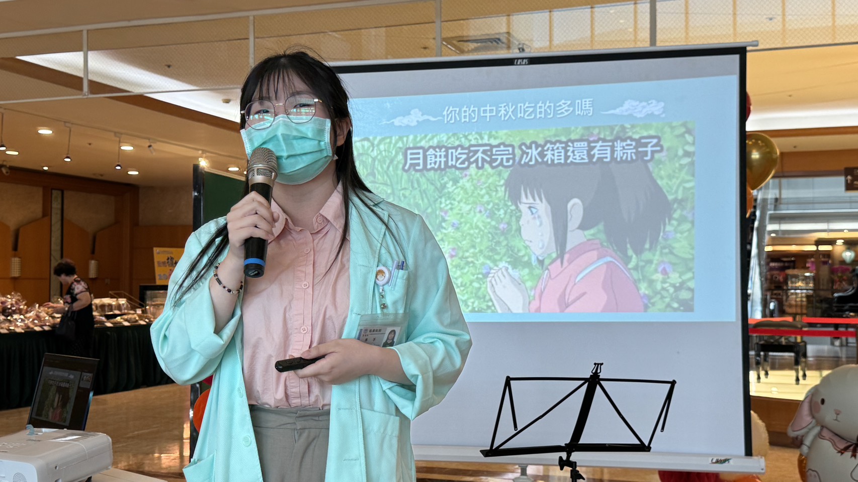 義大醫院營養治療科廖葶營養師提醒,中秋餐桌少不了月餅與烤肉,但只要掌握份量與均衡原則,也能在歡聚之餘維持健康,不讓身體增添負擔。現場民眾踴躍提問,氣氛熱絡。